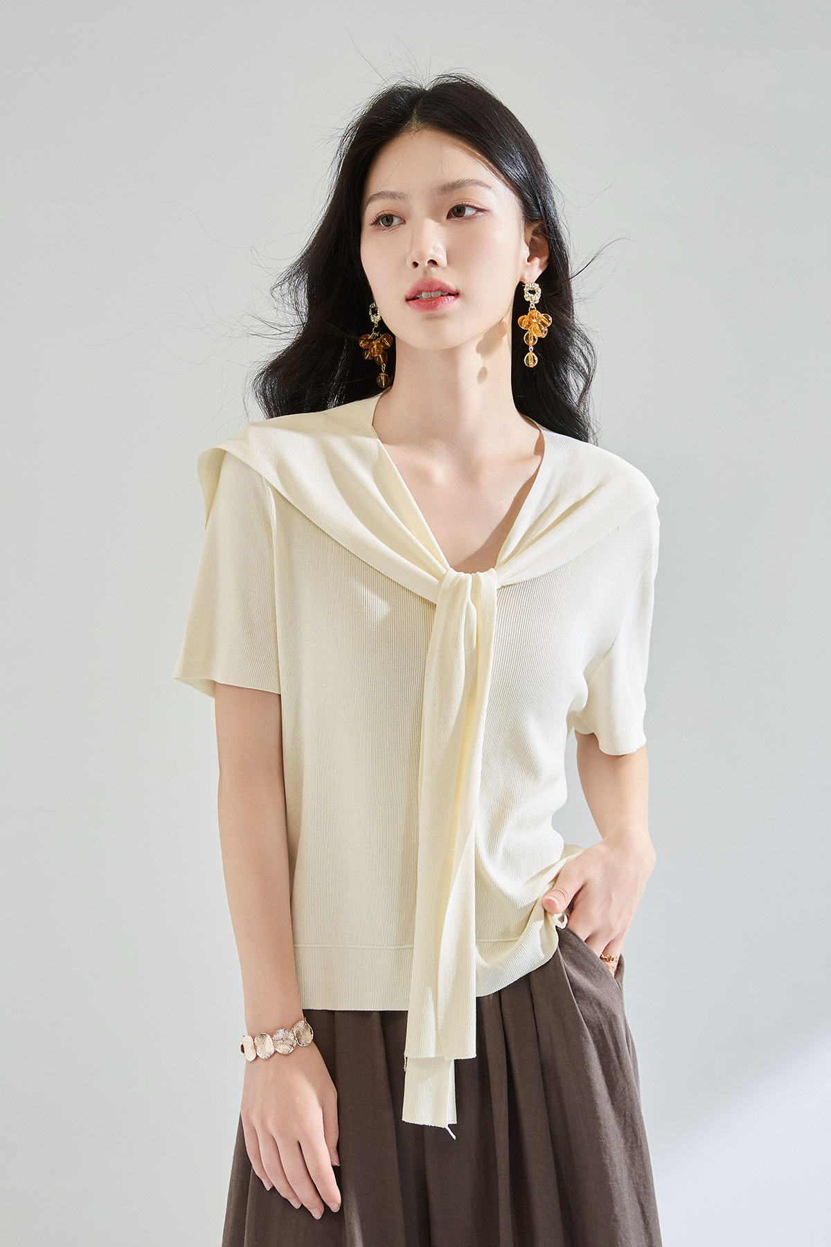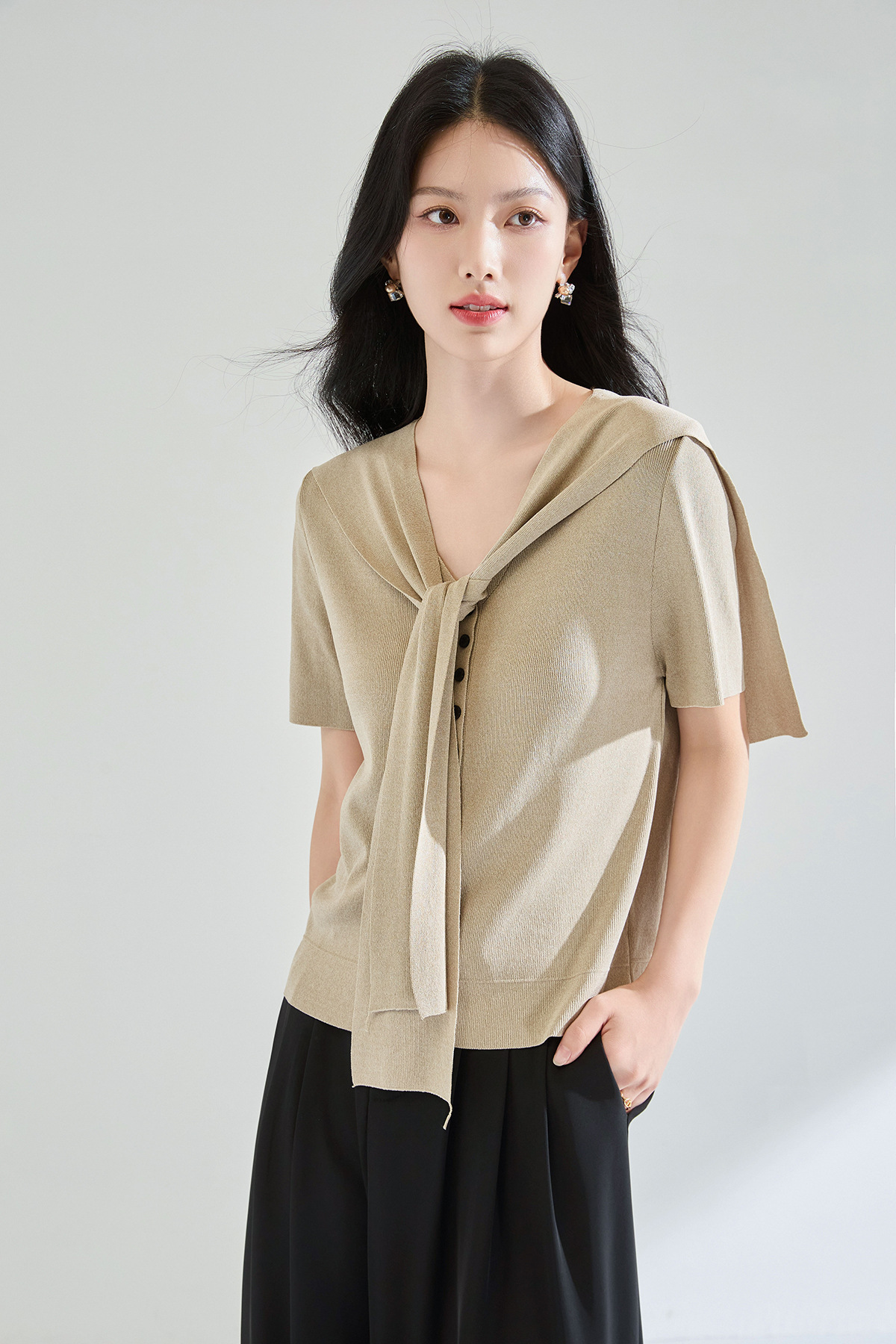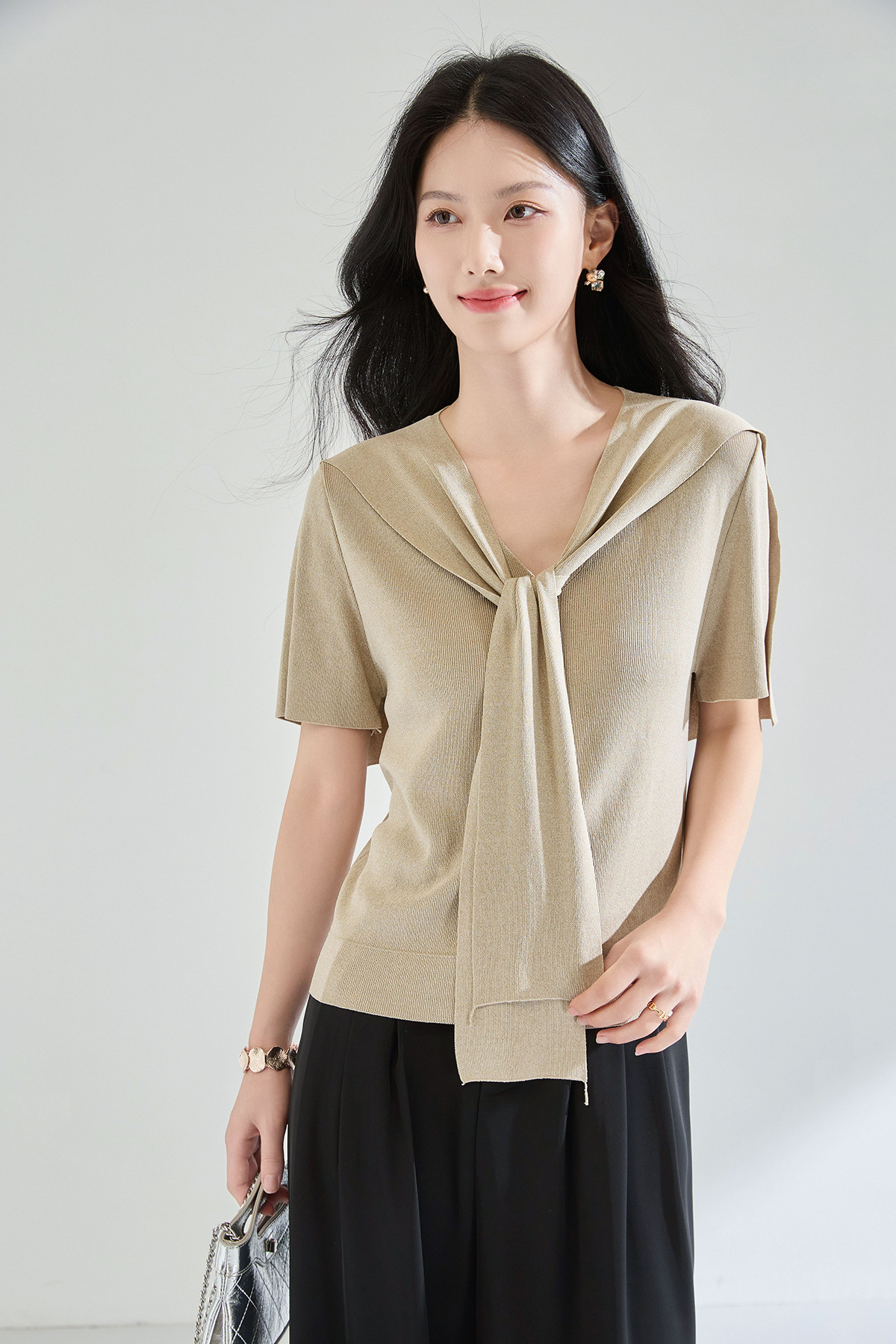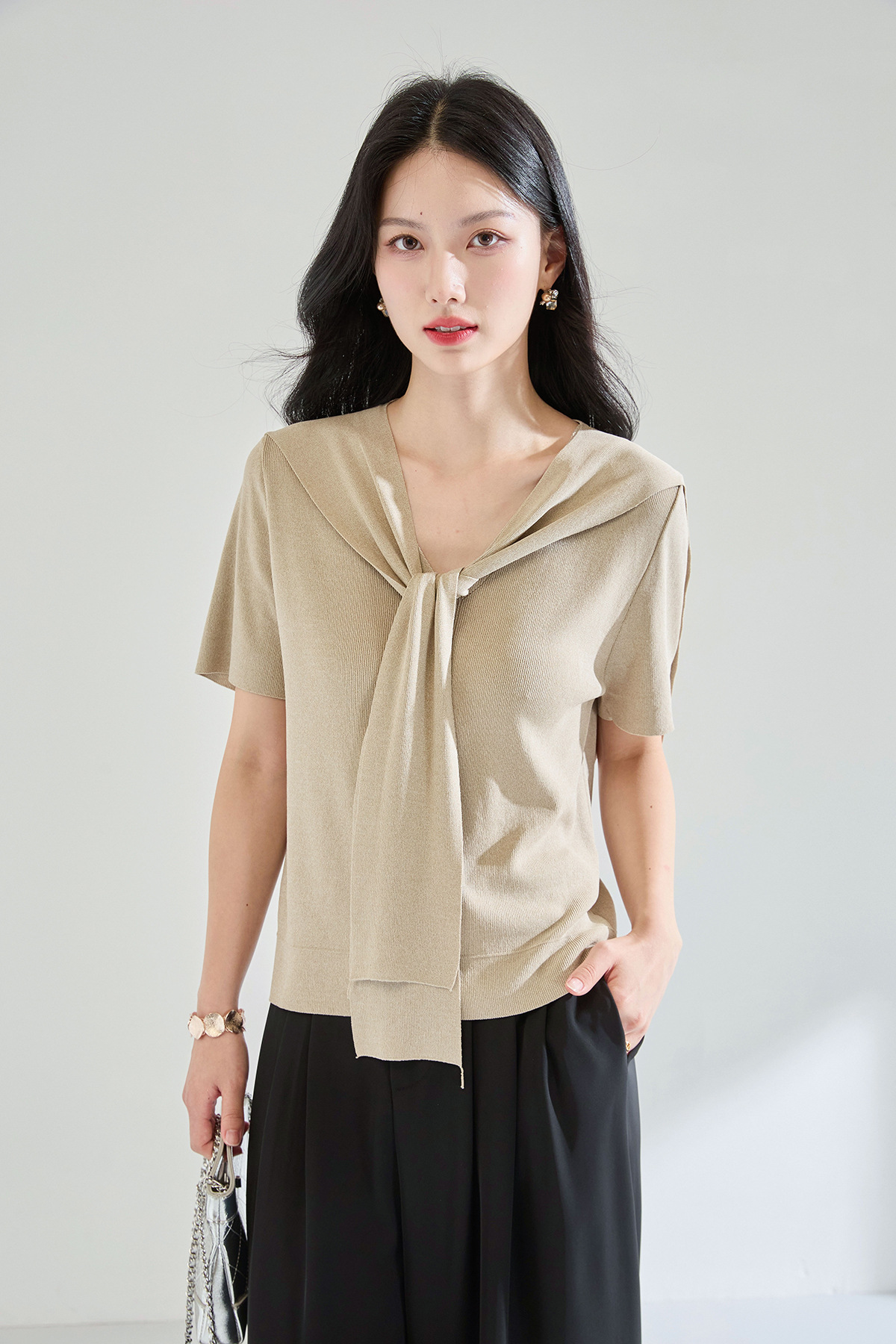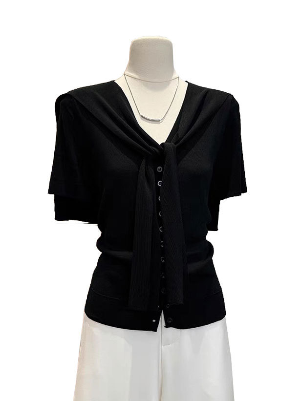 「高货sh」全新升级【铂金会员165/天猫219/差价54】(01111)洛诗琳夏季高级感简约气质V领短袖针织衫外搭披肩两件套