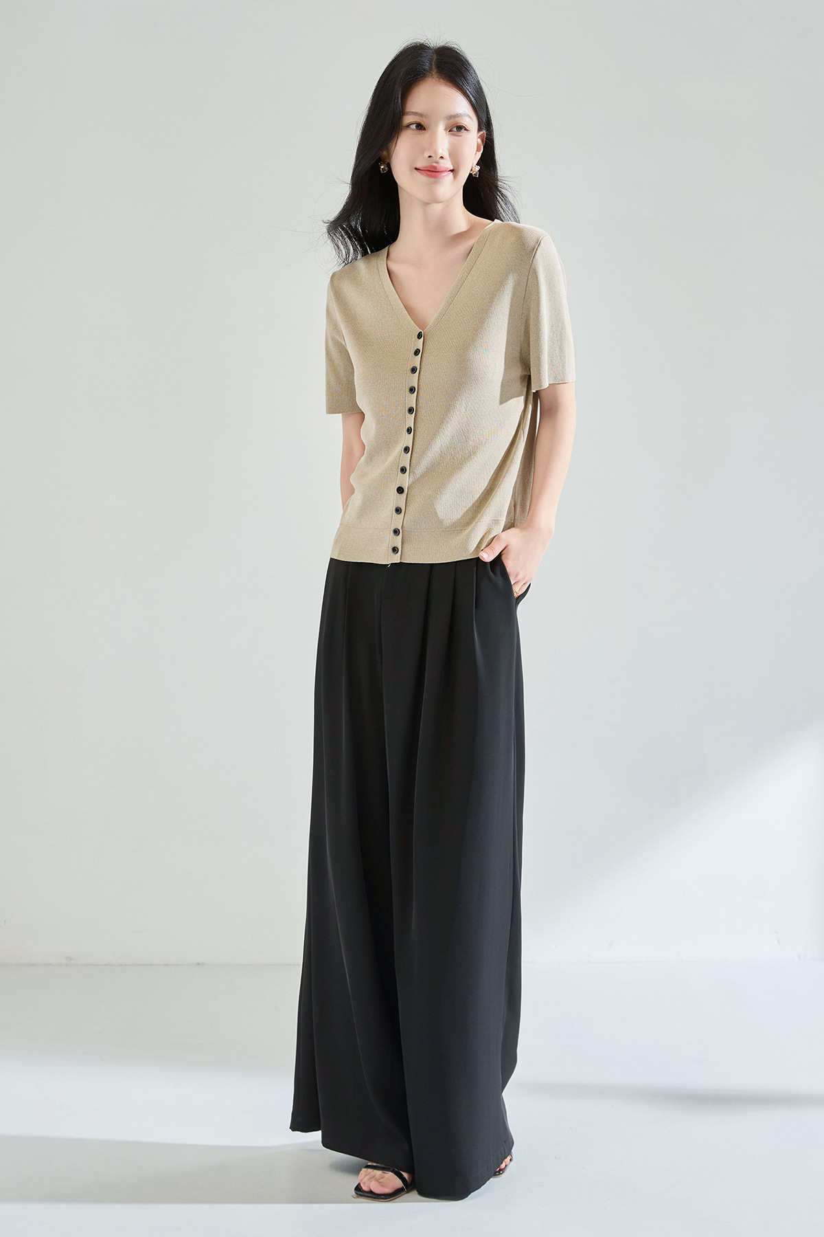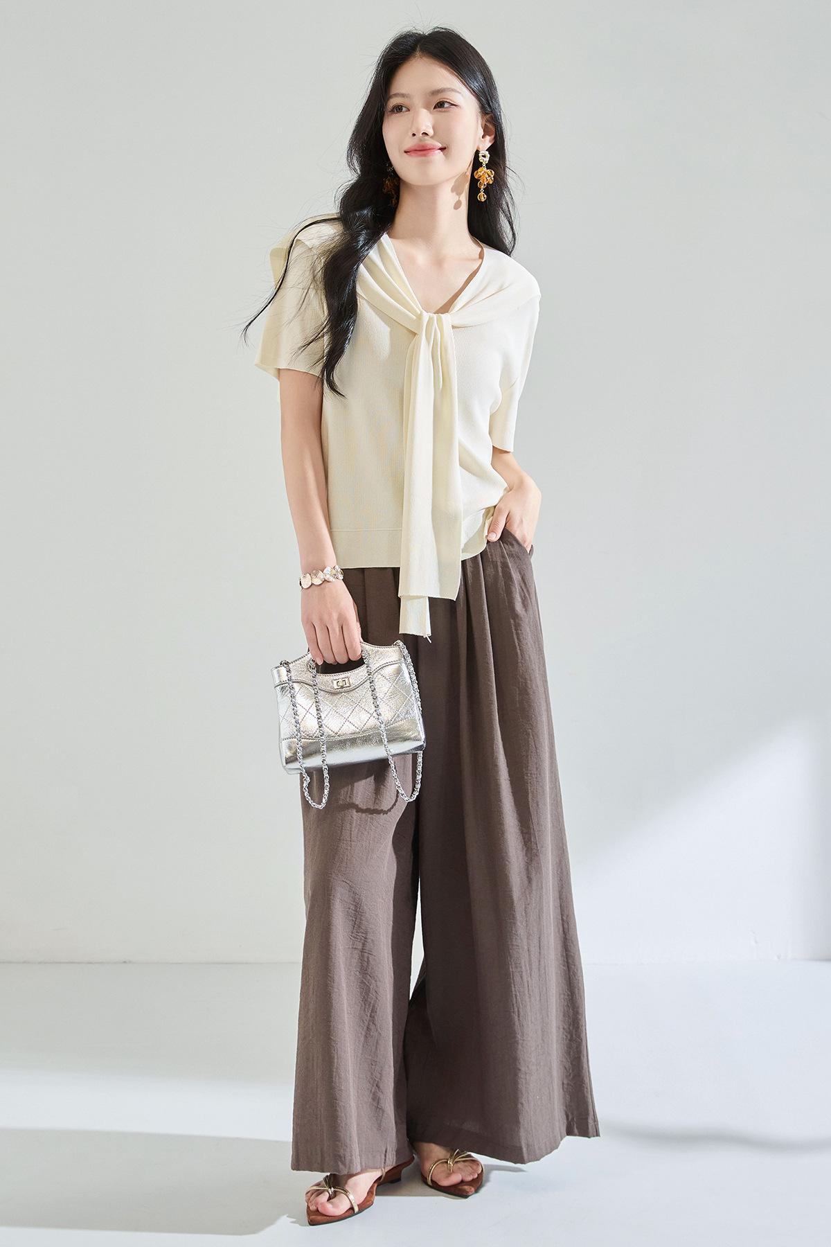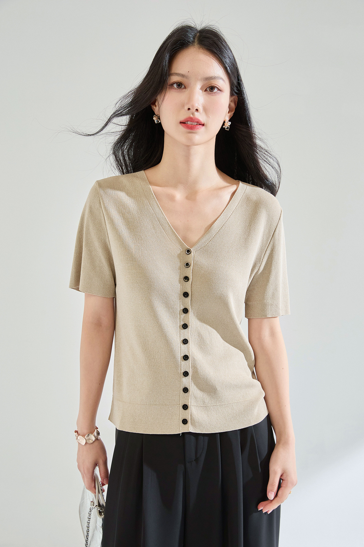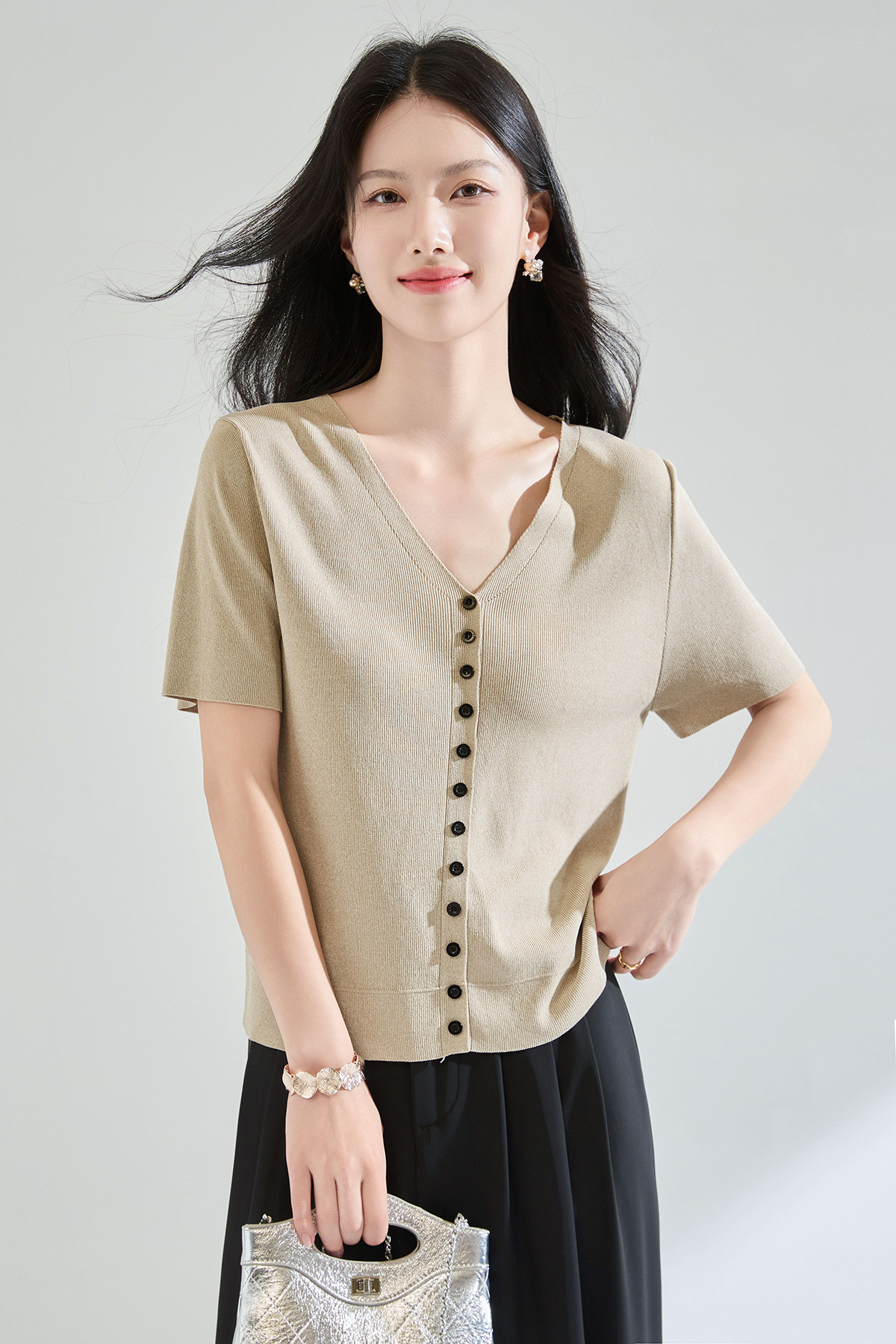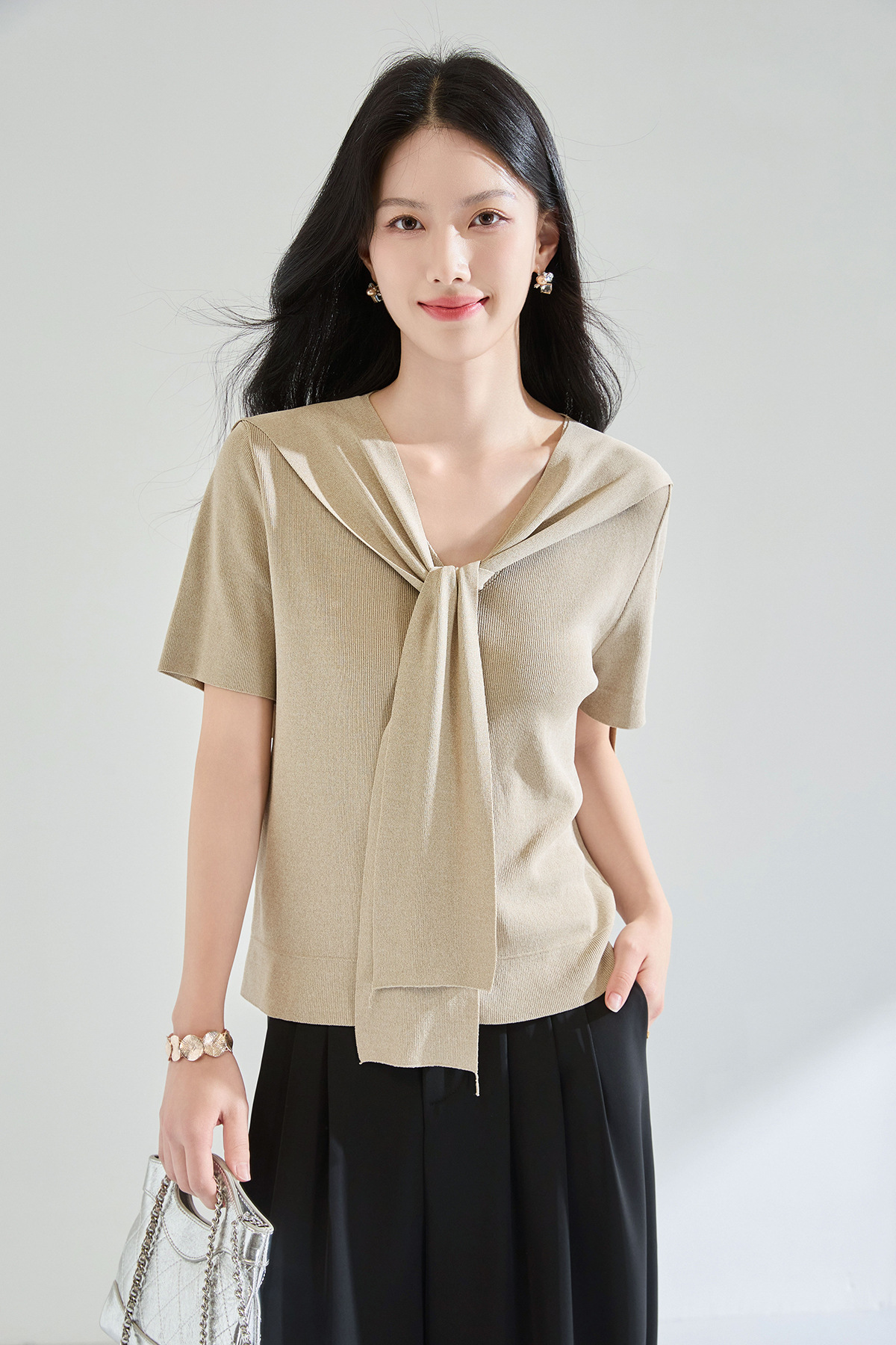 「高货sh」全新升级【铂金会员165/天猫219/差价54】(01111)洛诗琳夏季高级感简约气质V领短袖针织衫外搭披肩两件套