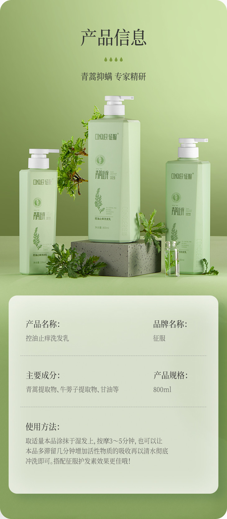 征服-暖暖 新升级2代青蒿洗发乳,滋养头皮,强韧发根润肤沐浴露,护发素改善脆弱发质、受损发丝 青蒿固发柔顺洗发系列