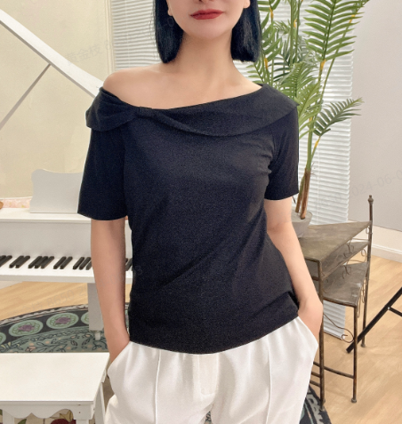 臣禾黑色露肩上衣9212055276