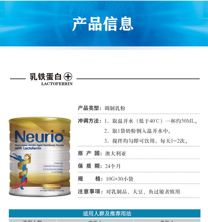 【海外直邮】Neurio/纽瑞优 乳铁乳清蛋白粉 300g
