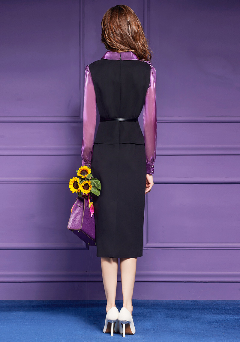 衬衫连衣裙女春季新款翻领时尚简约收腰假两件职业包臀裙子