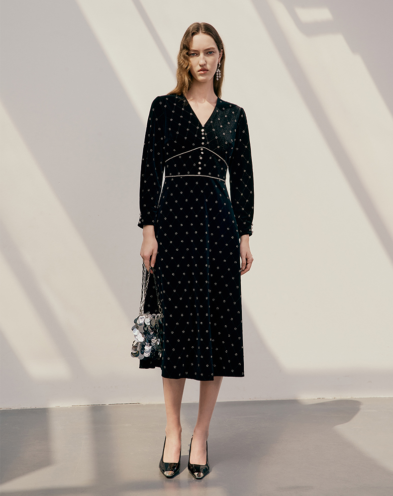 EITIE爱特爱品牌女装冬季修身圆领羊毛中长款毛织连衣裙5801514
