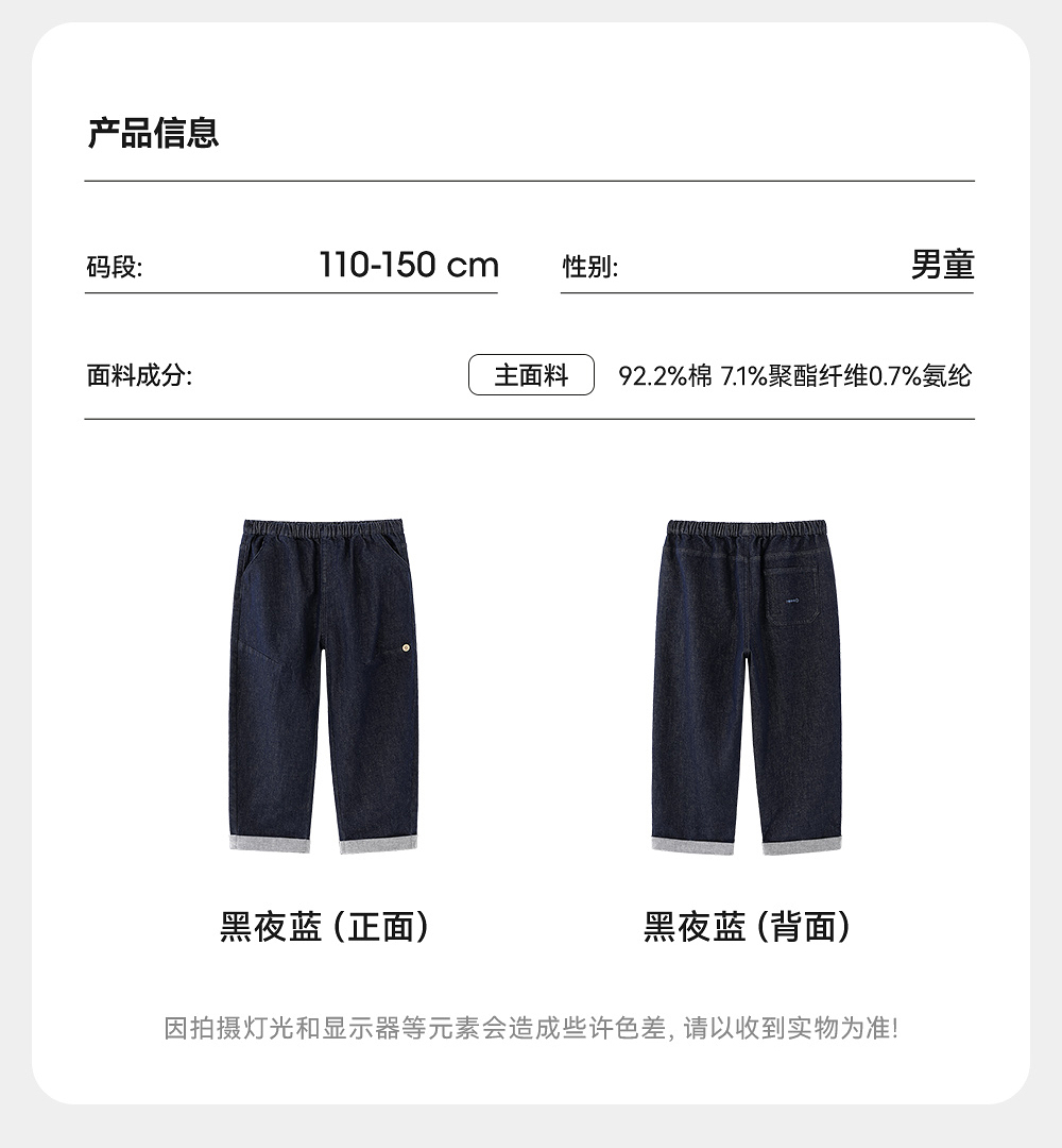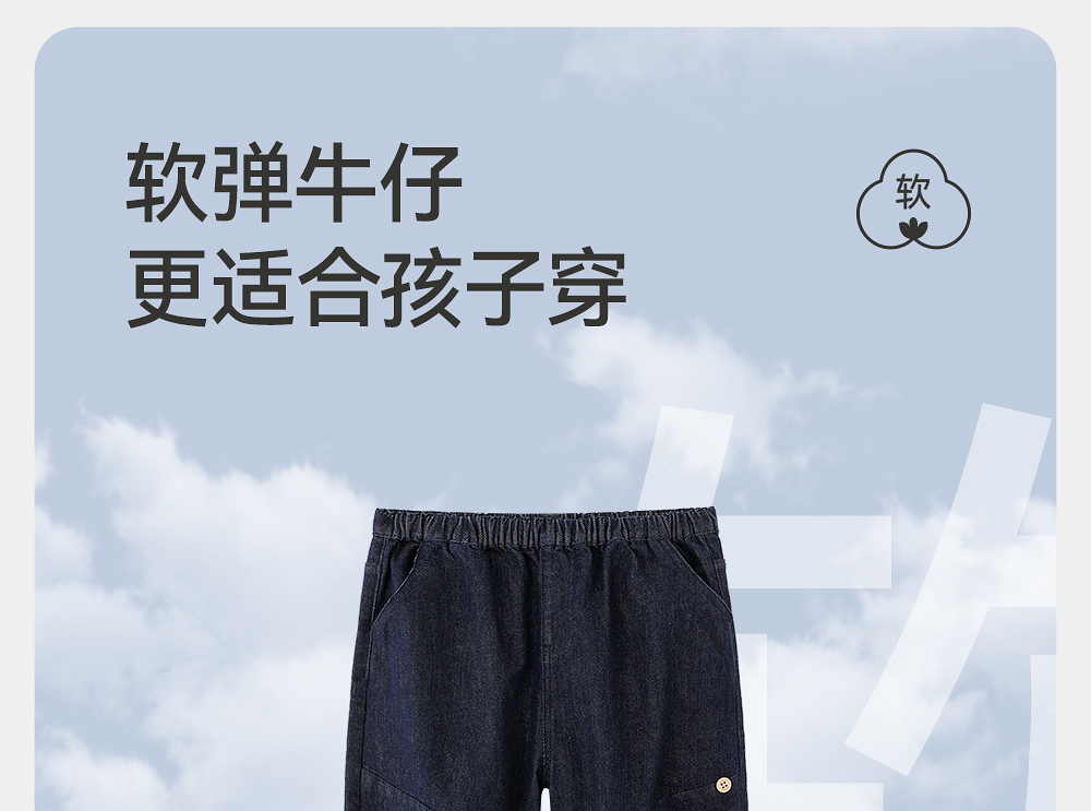 【商场同款】英氏儿童裤子春夏男童休闲牛仔裤百搭长裤2025新款