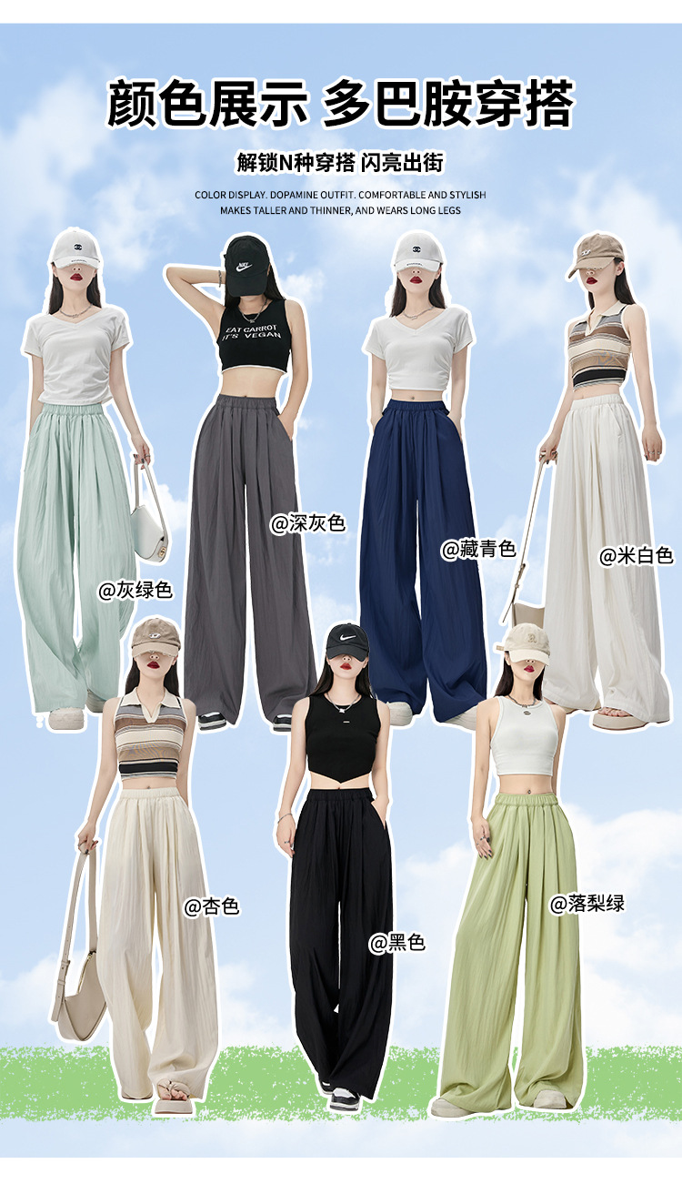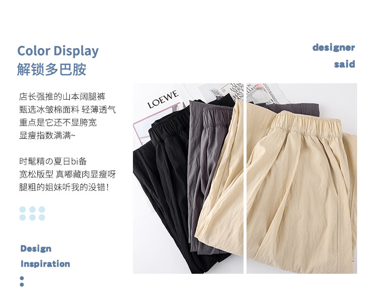 丁摩 山本裤女高腰垂感夏季宽松拖地超火薄款透气显瘦百搭休闲裤子5ZF-720