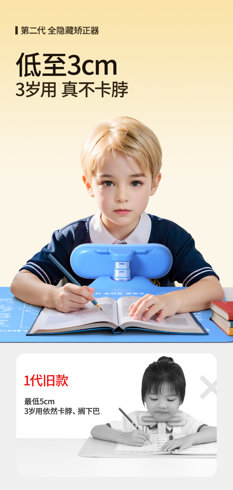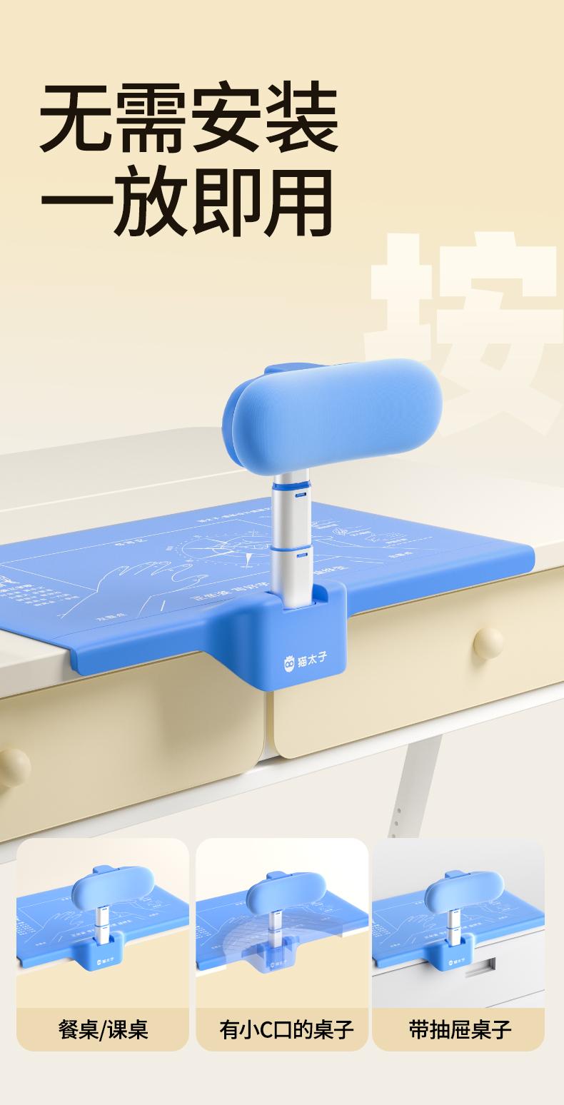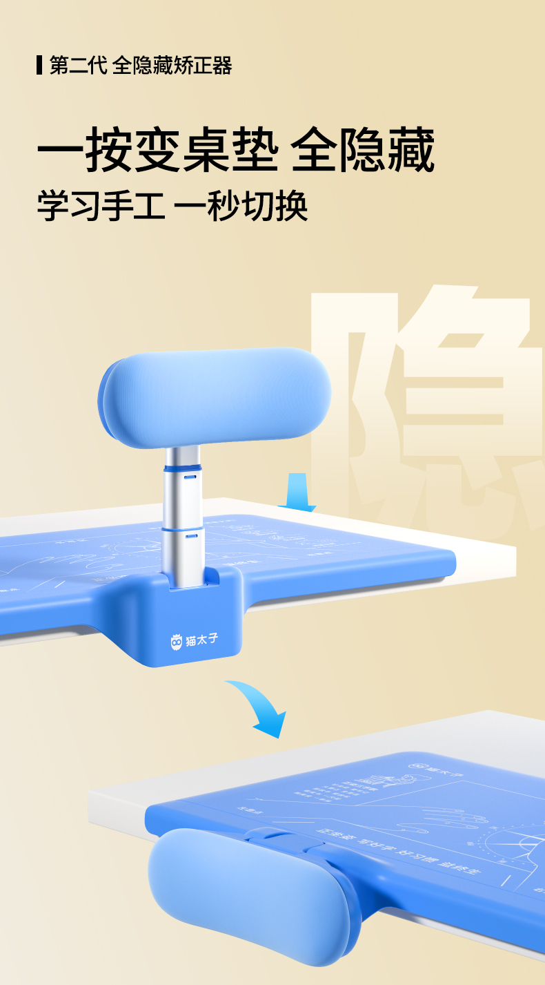 猫太子坐姿矫正器小学生桌面款隐藏儿童写字姿势防近视防低头写作业学习书桌座椅纠正正姿防驼背视力保护神器