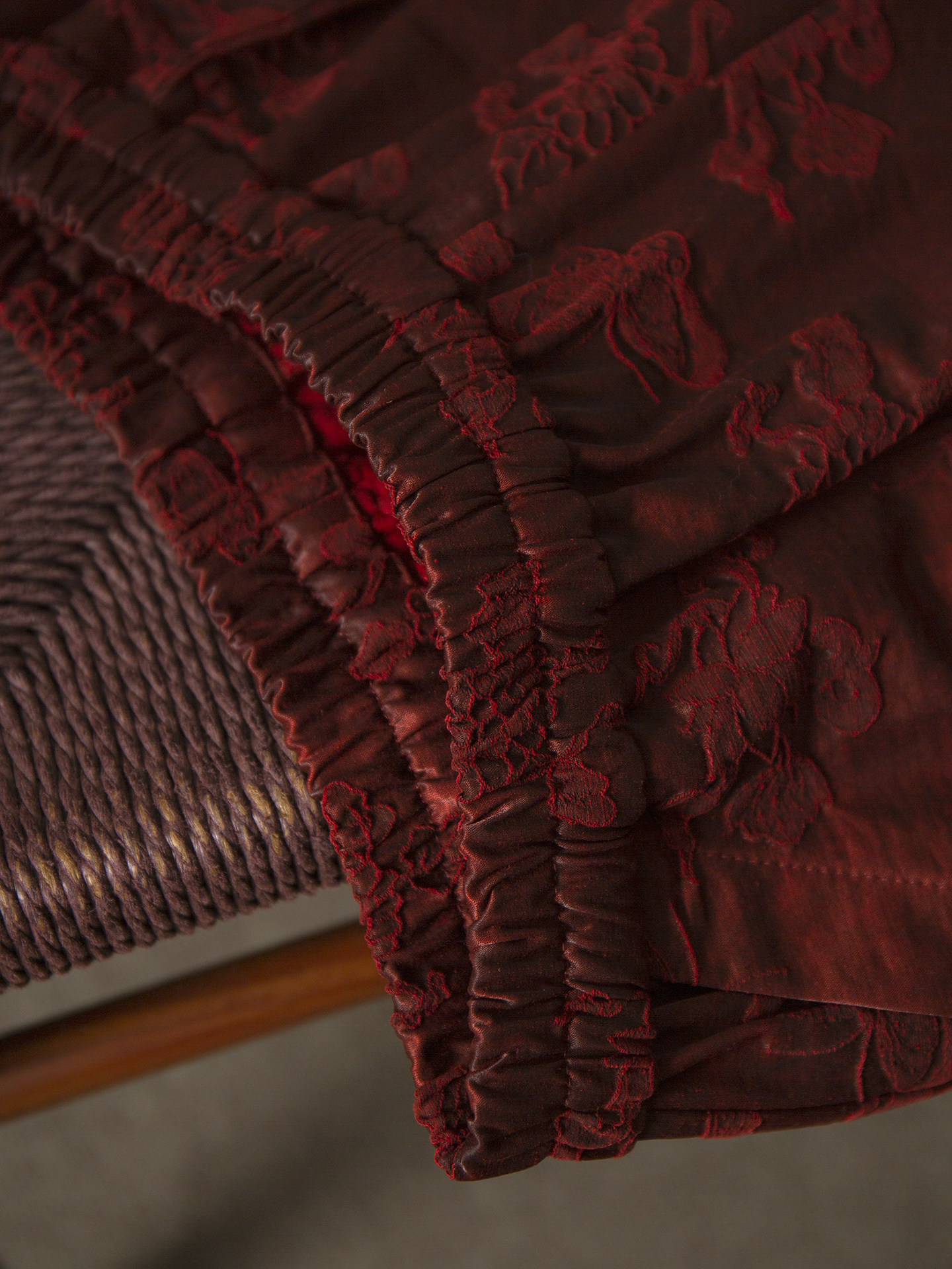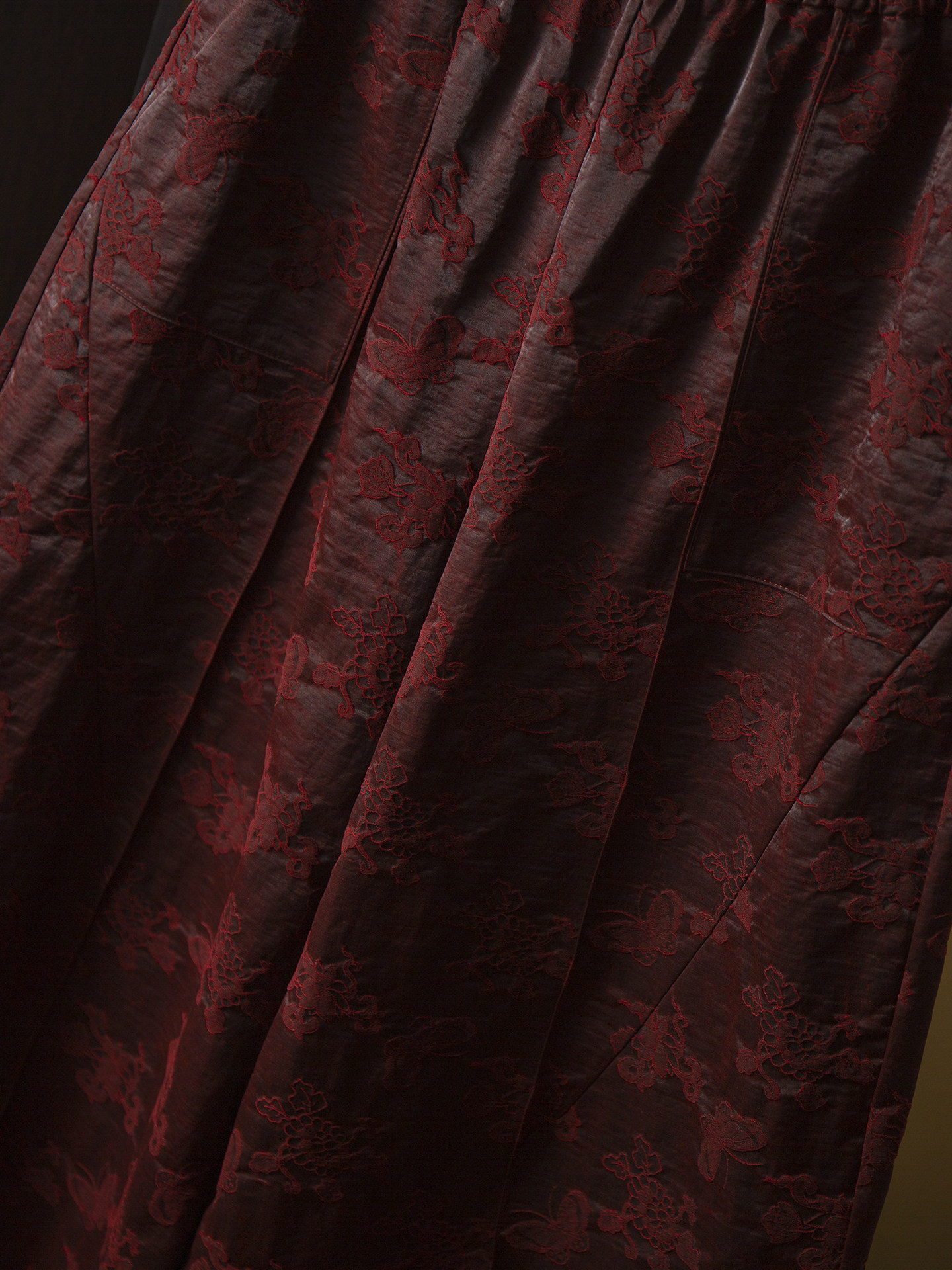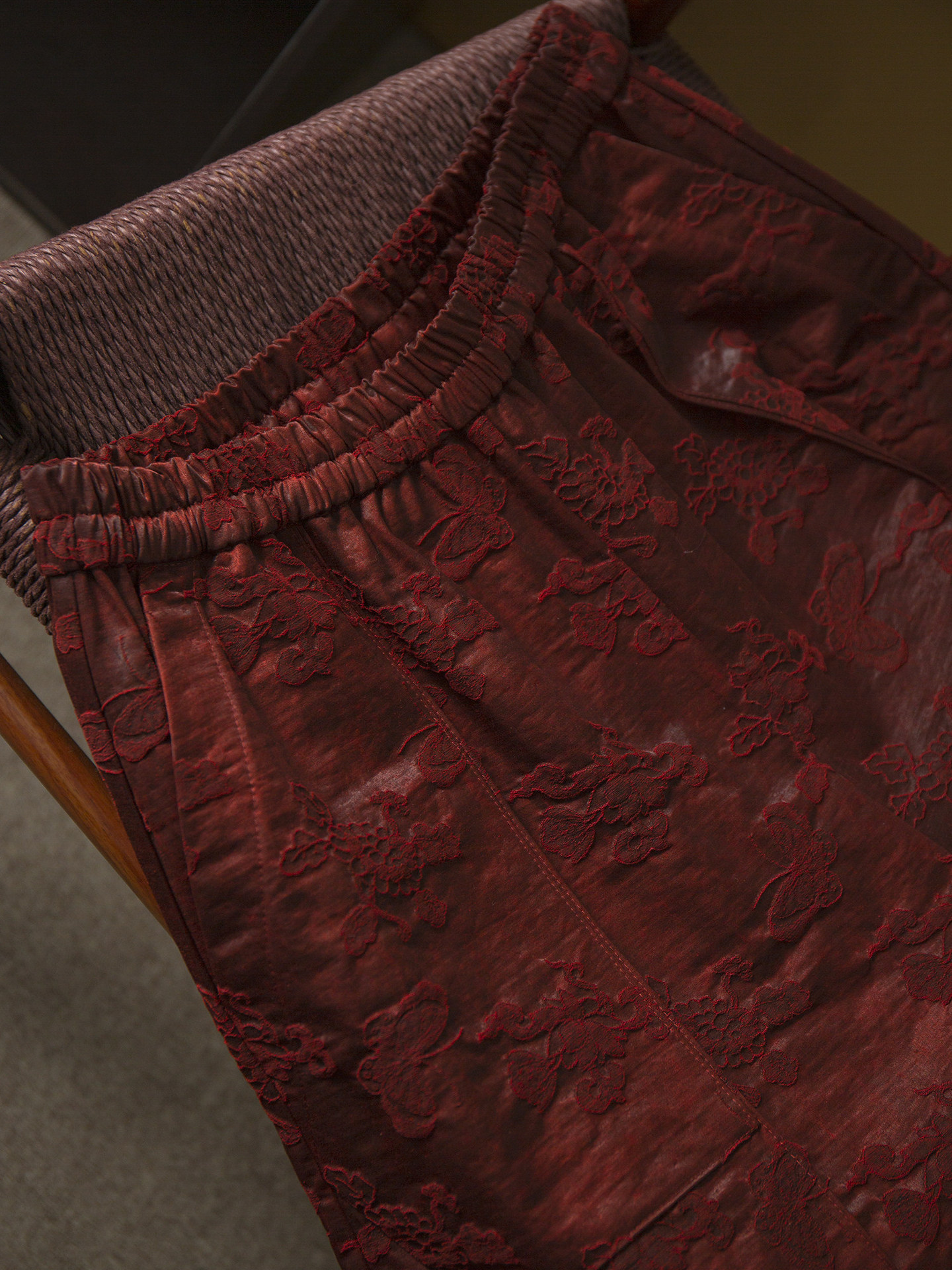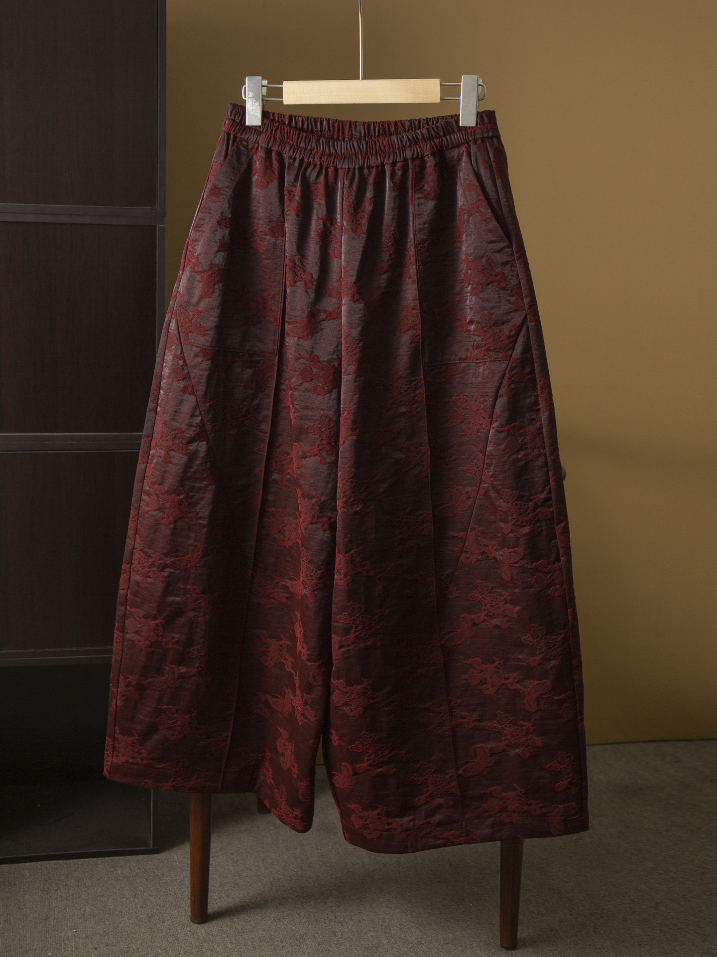 丁摩 重磅50姆米浮雕油丝香云纱提花真丝阔腿裤花苞裤女松紧腰桑蚕丝春6ZF-463