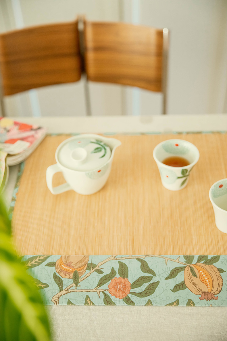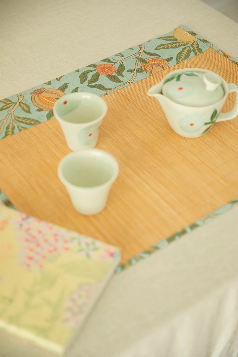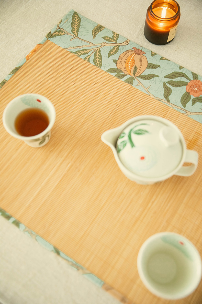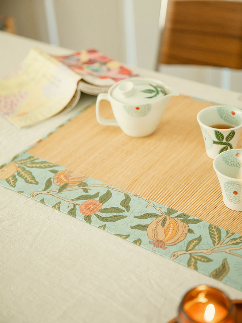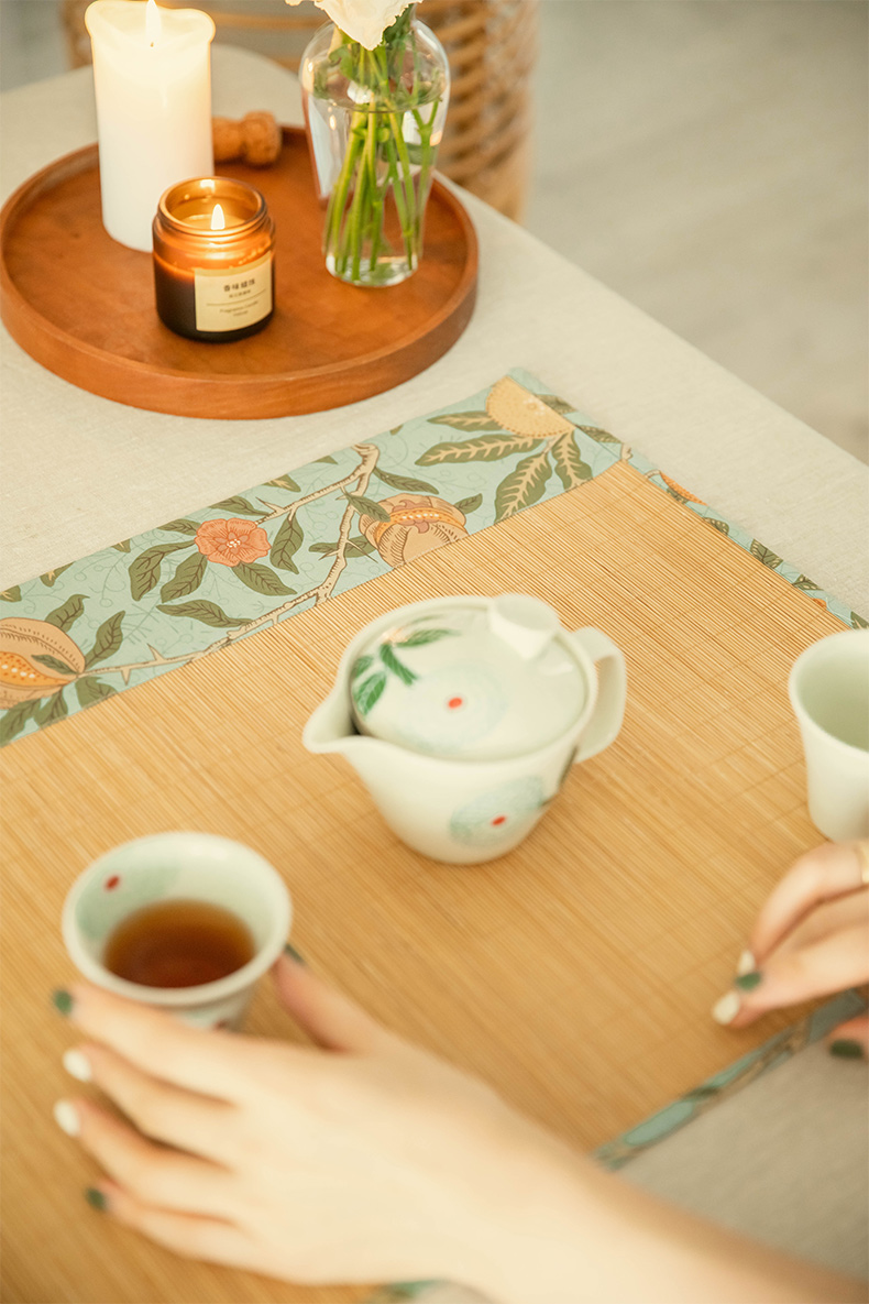 石榴与花竹制茶垫新中式禅意茶席