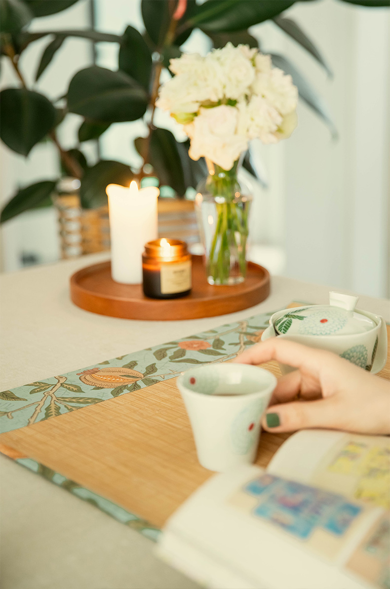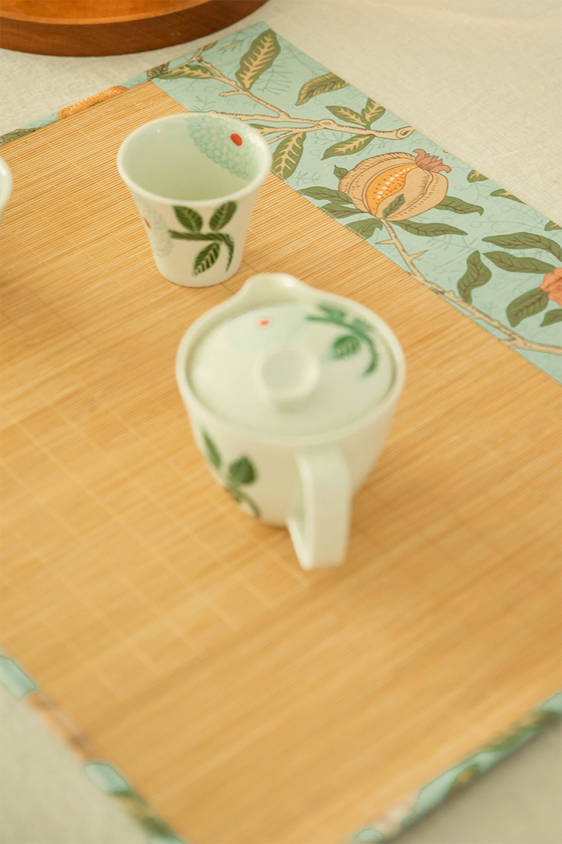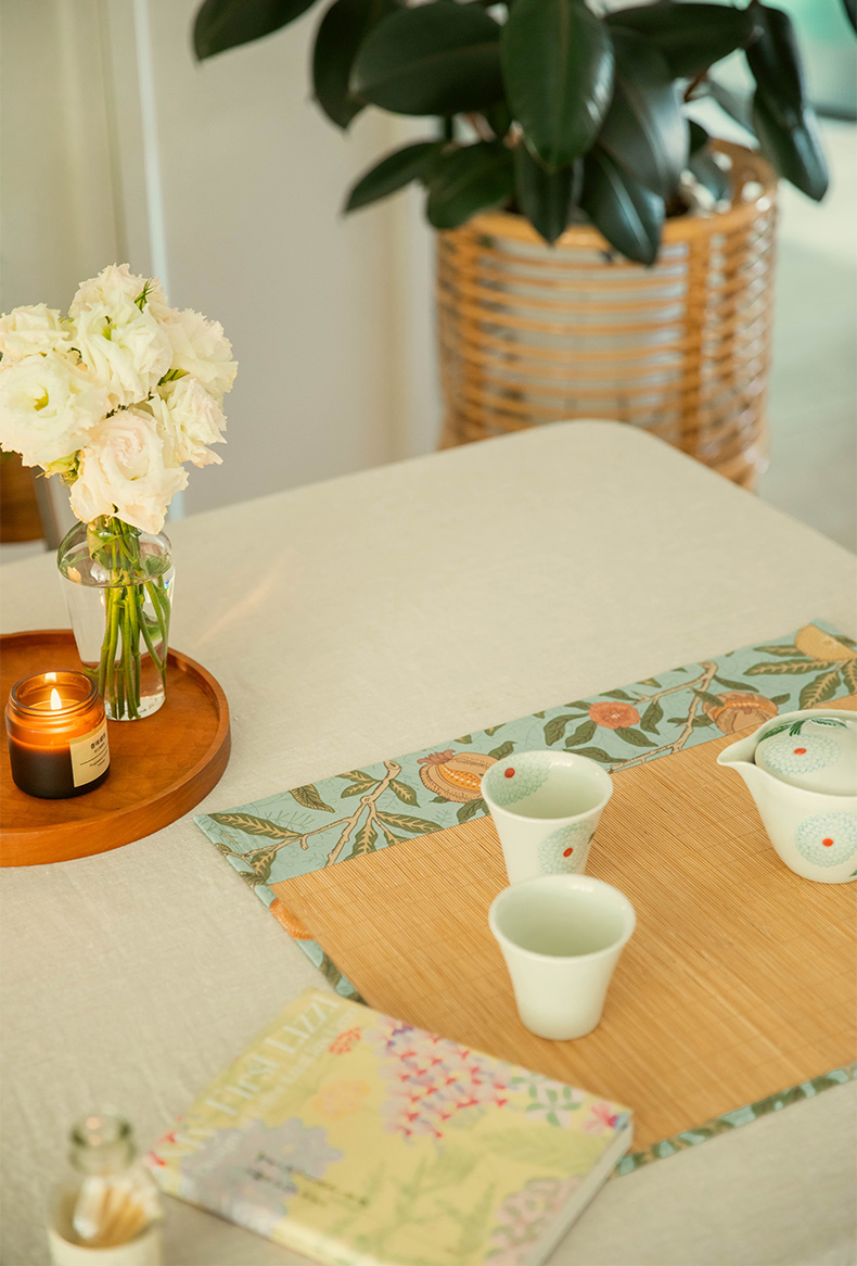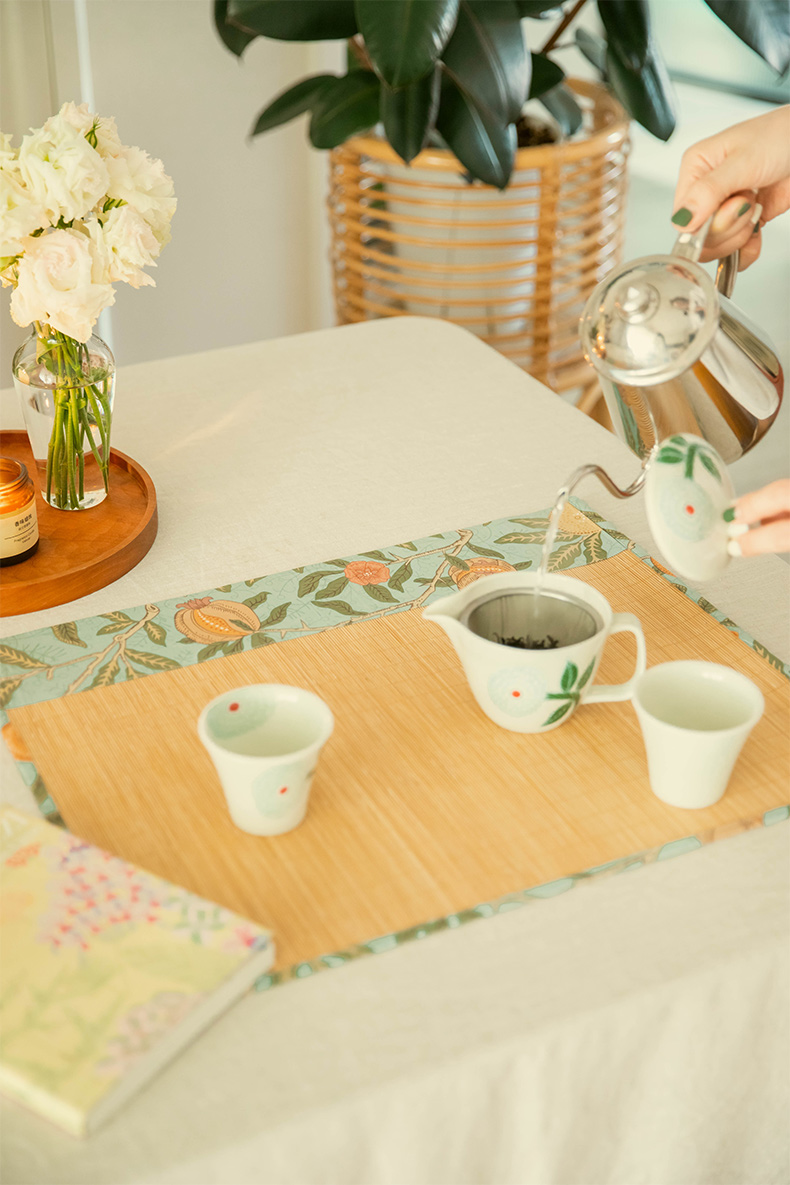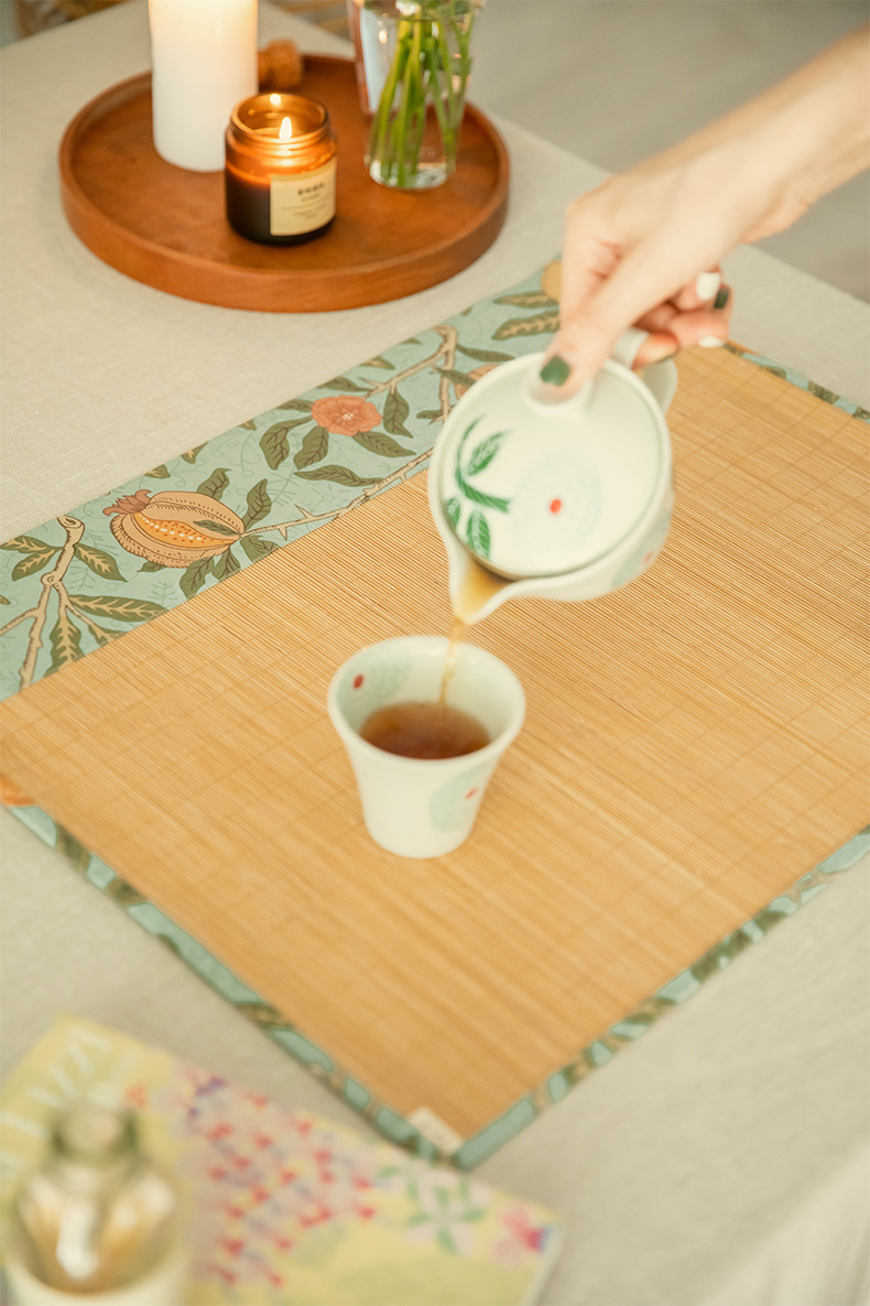 石榴与花竹制茶垫新中式禅意茶席