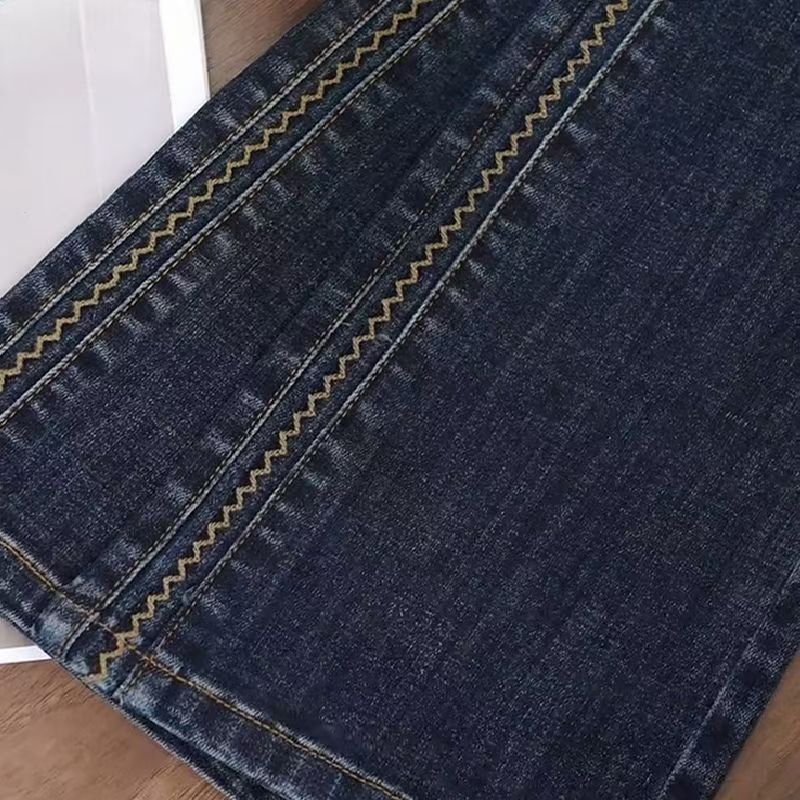 雀说复古蓝弯刀牛仔裤女美式高腰显瘦宽松直筒镰刀裤子AL5869