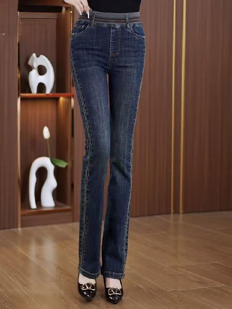 雀说微喇加绒加厚羊羔绒牛仔裤新款大码休闲显瘦喇叭裤AL218