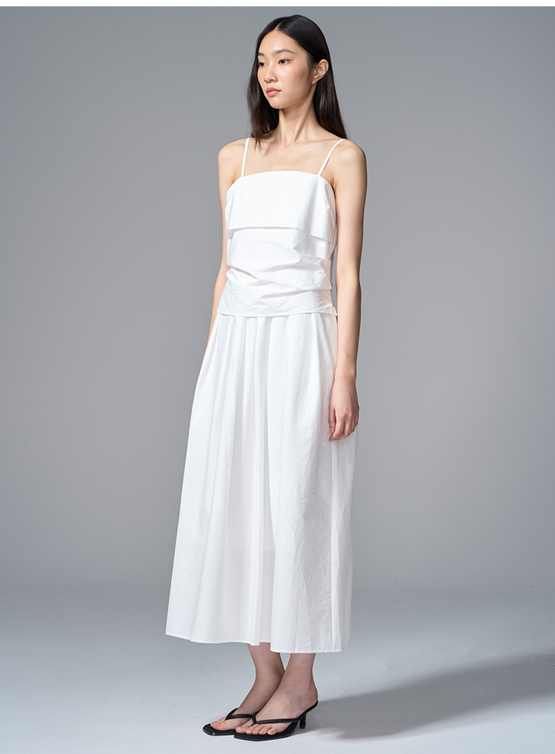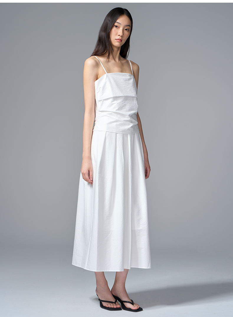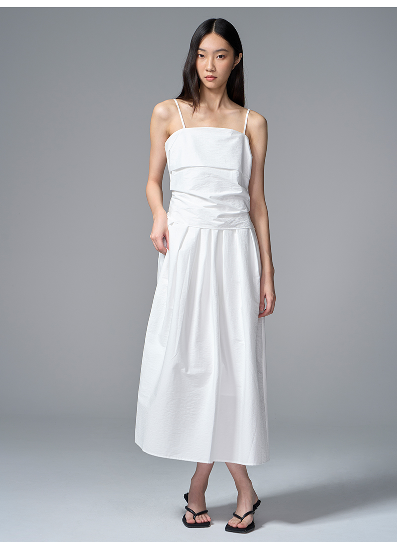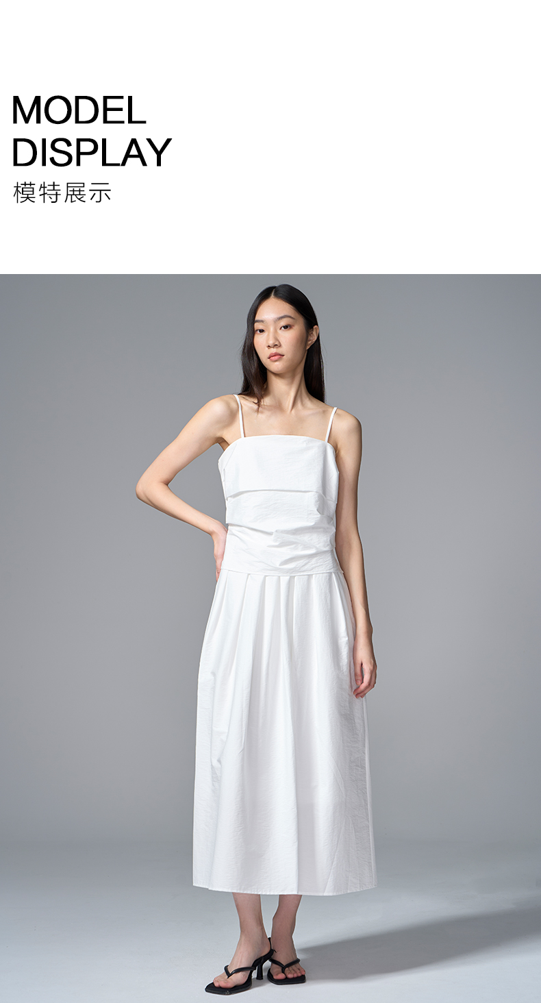 VIMAGE纬漫纪棉混纺纯色度假风褶皱大裙摆吊带连衣裙2025夏季新款连衣裙V2307928