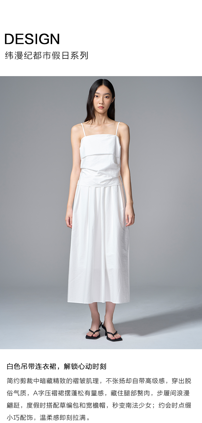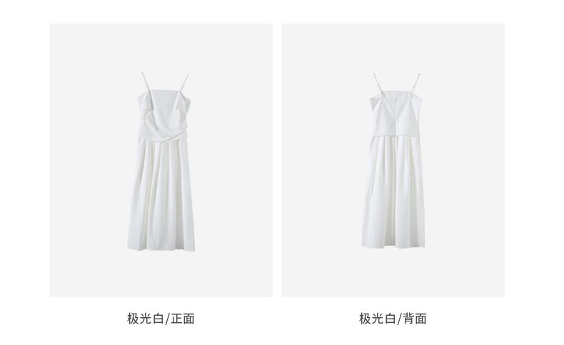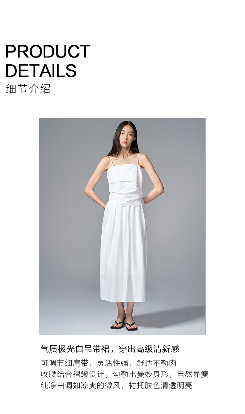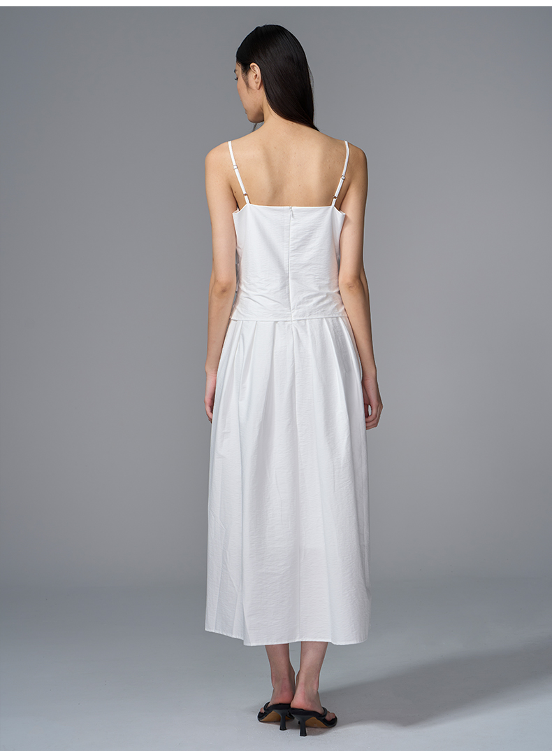 VIMAGE纬漫纪棉混纺纯色度假风褶皱大裙摆吊带连衣裙2025夏季新款连衣裙V2307928
