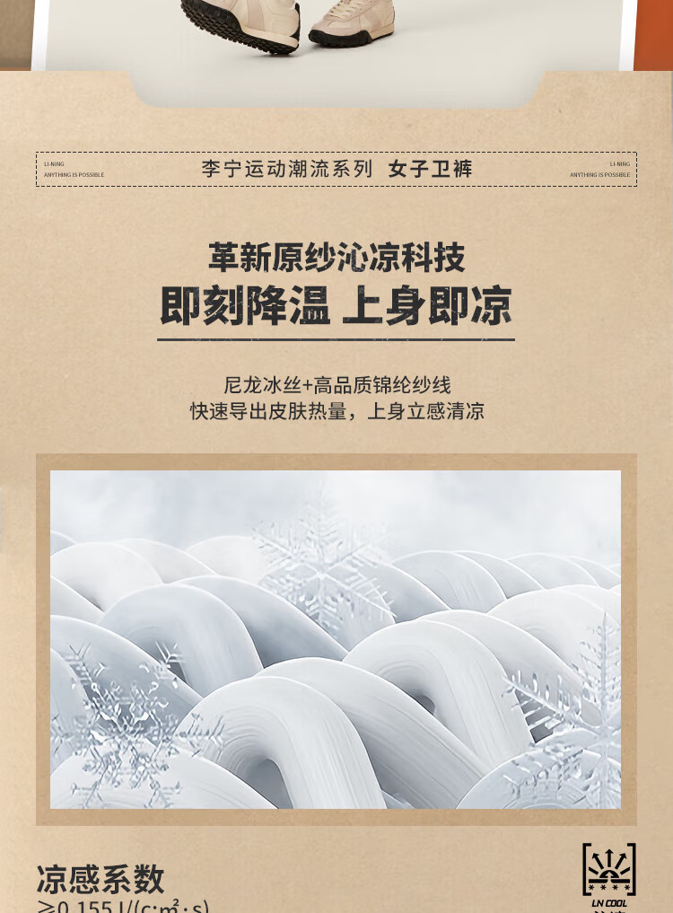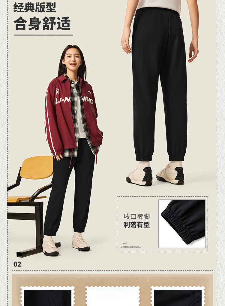 【抄底!299任选2件】李宁束脚冰感舒适吸湿排汗运动裤女子25新款挺括舒适休闲卫裤AKLV352