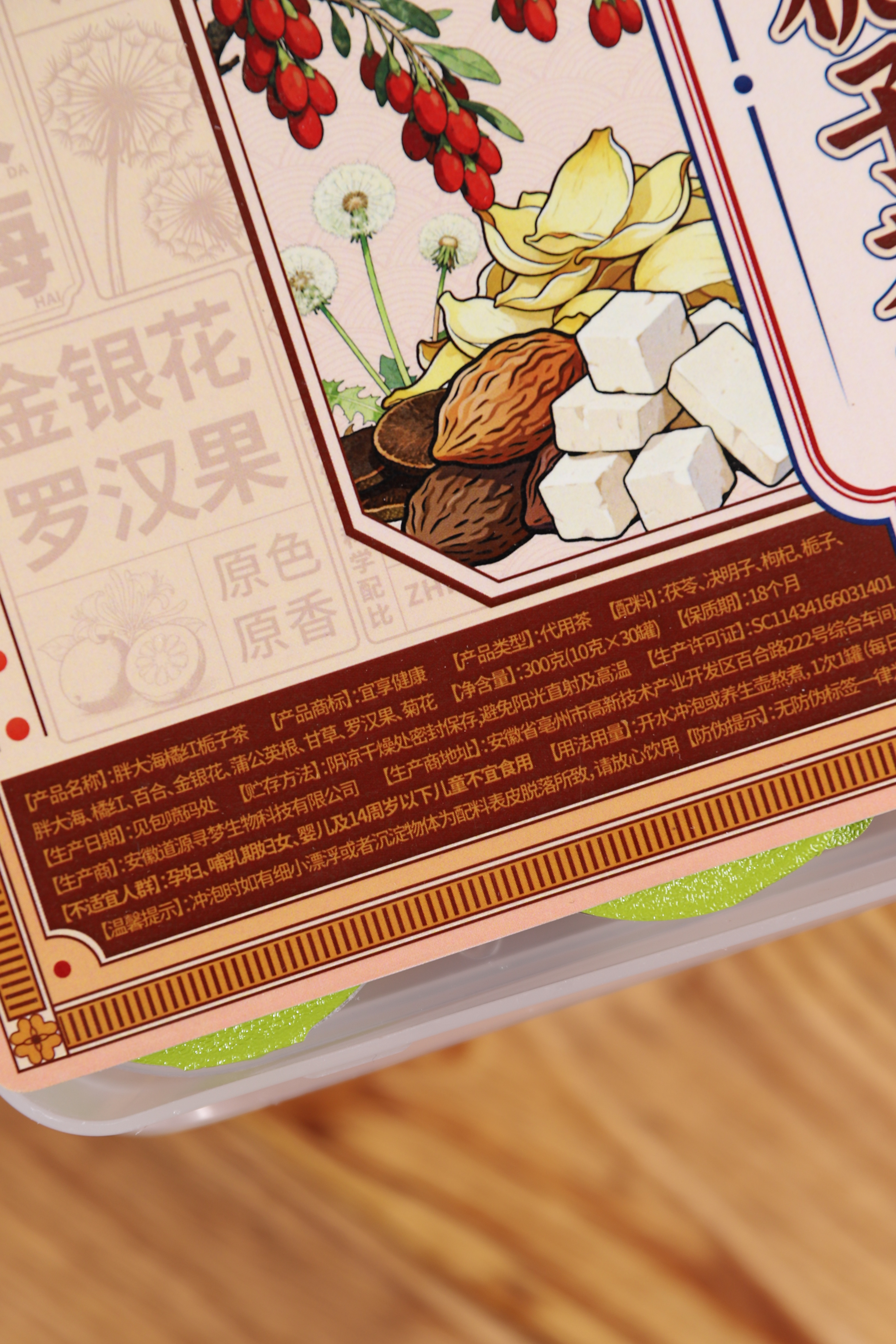 【品名】国药药材胖大海橘红栀子茶 【规格】150g/盒(10g*15罐) 【配料】茯苓、决明子、枸杞、栀子、胖大海、橘红、百合、金银花、蒲公英根、甘草、罗汉果、菊花 【保质期】18个月 【储存方法】请置于阴凉干燥处,避免阳光直射 【产地】安徽 【发货地】安徽 【发货快递】三通一达 【不发货区域】新疆,西藏,港澳台地区不发 【补邮费地区】内蒙、甘肃、青海、宁夏+15元 【发货时效】48小时,节假日顺延 |