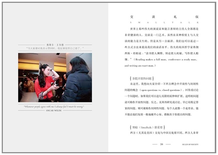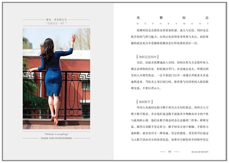 ☆好的礼仪是内在教养的体现,真正的淑媛不仅要衣着得体,身姿优雅,更要说话有信心、做事有分寸、头脑有思想、待人有涵养。何佩嵘女士将国际精修礼仪带入中国,教授年轻一代女孩如何进阶为国际化淑媛。