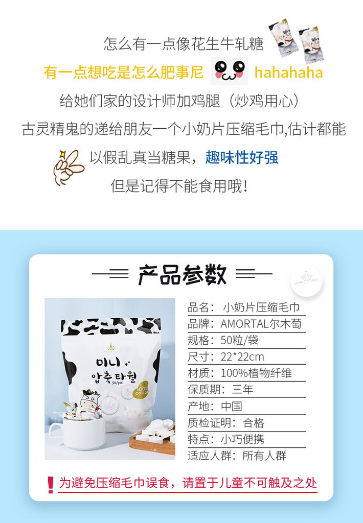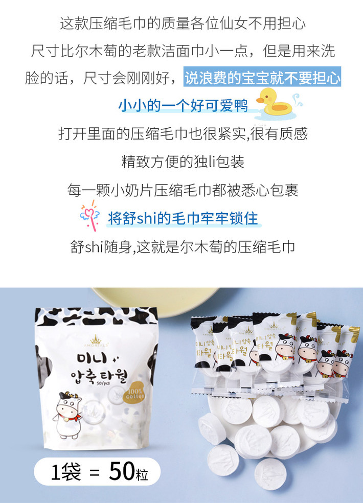 【门店直发 支持同城配送】尔木萄 小奶片压缩毛巾 50粒/袋