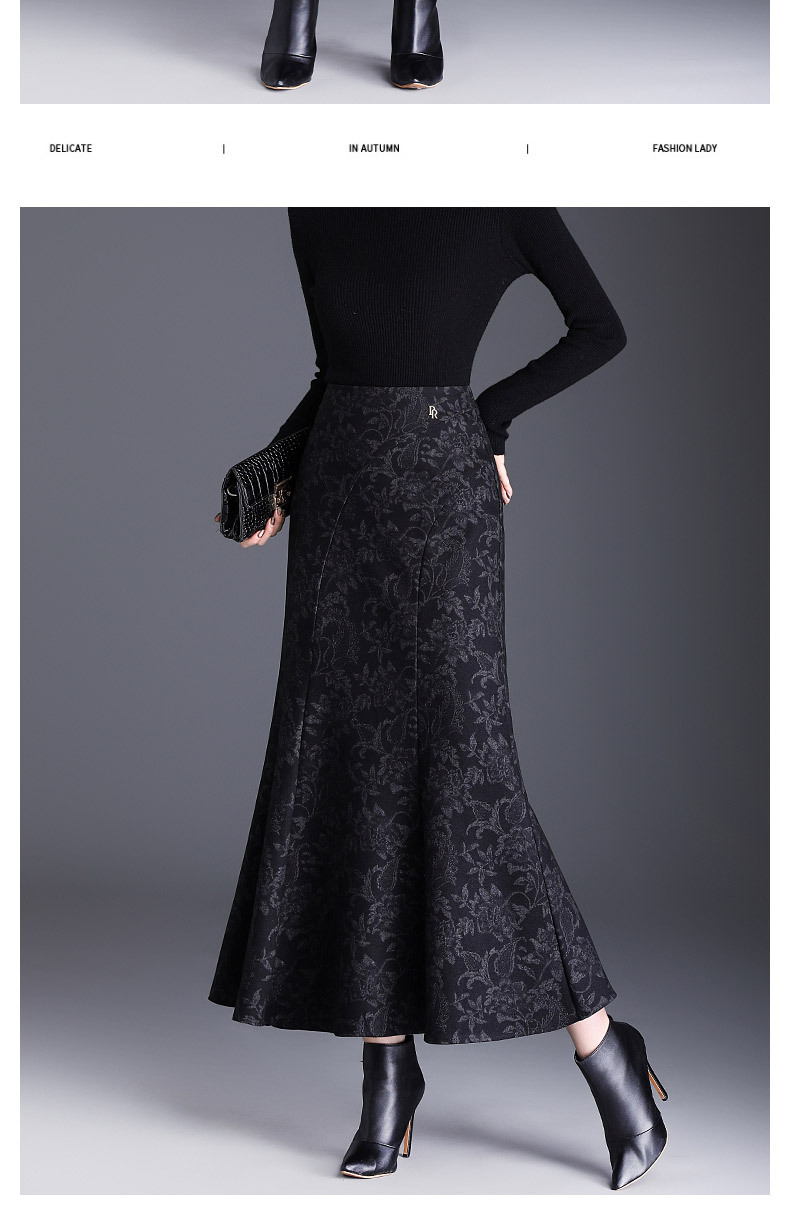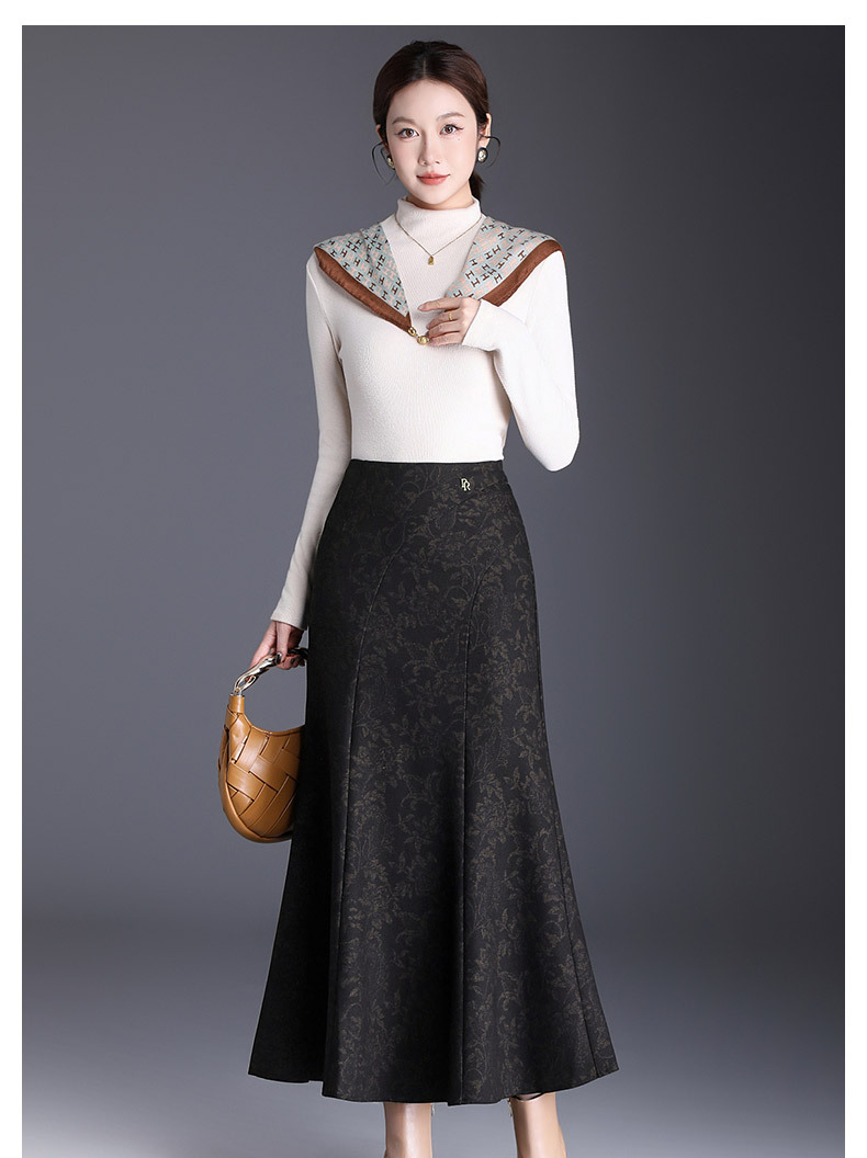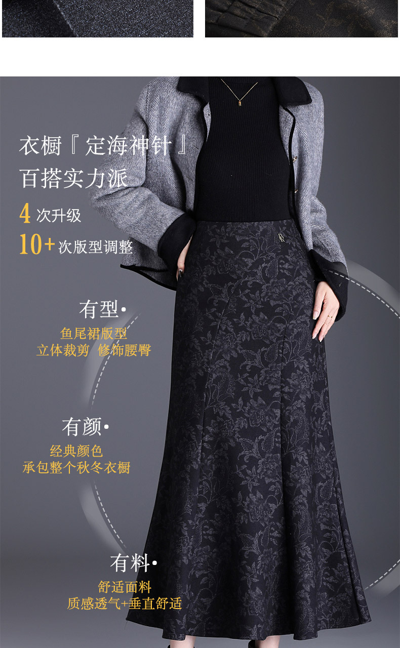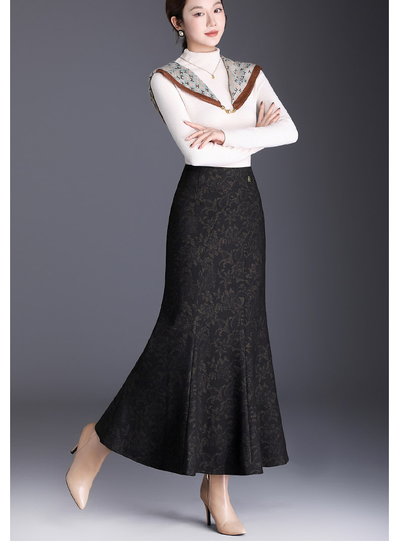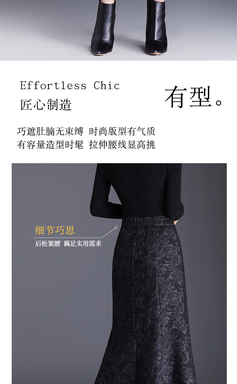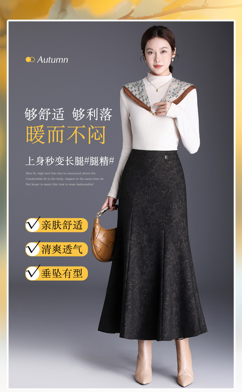 MYX印花通勤鱼尾裙2025年秋季新款长款高腰半身裙显瘦洋气包臀裙长裙