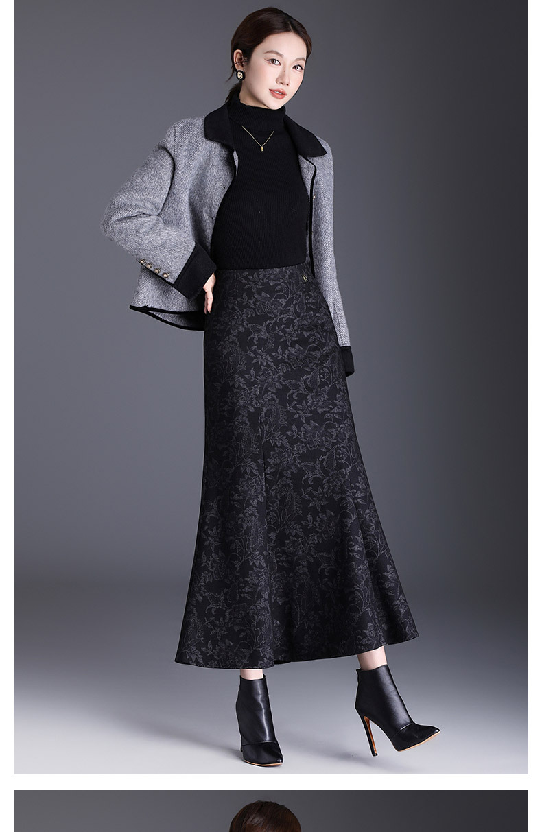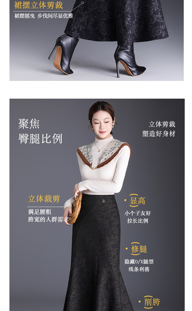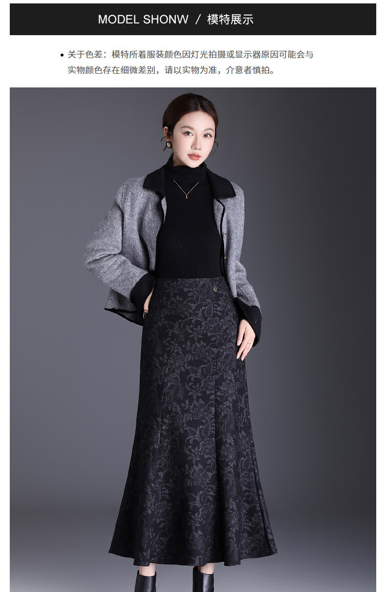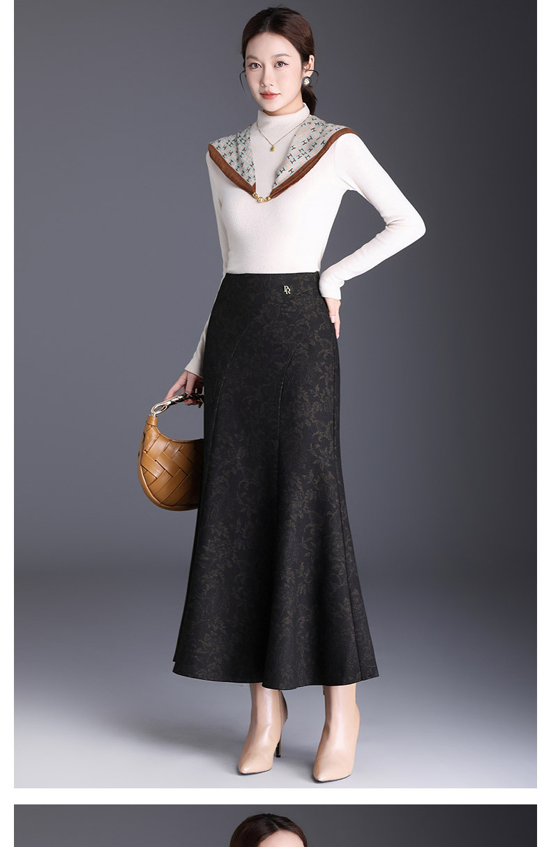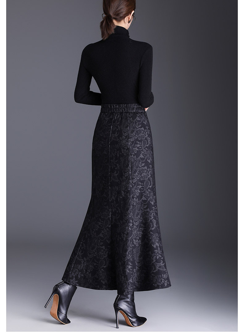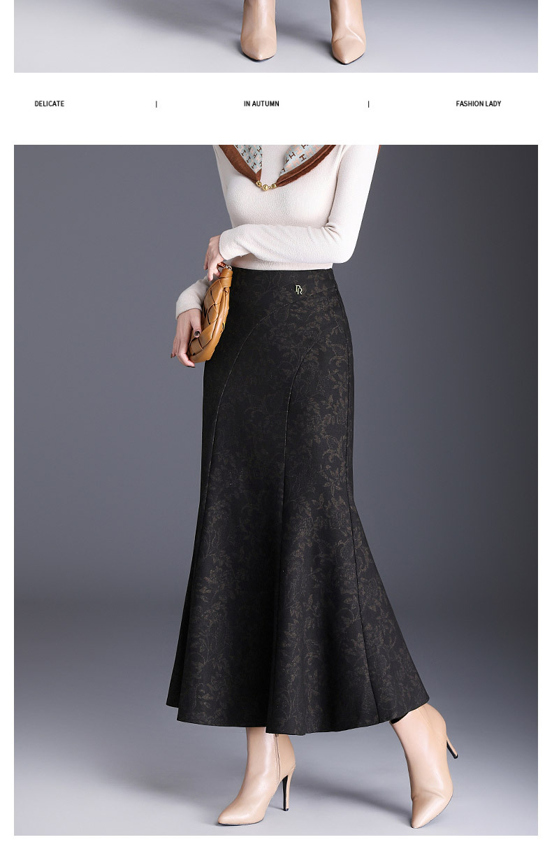 MYX印花通勤鱼尾裙2025年秋季新款长款高腰半身裙显瘦洋气包臀裙长裙
