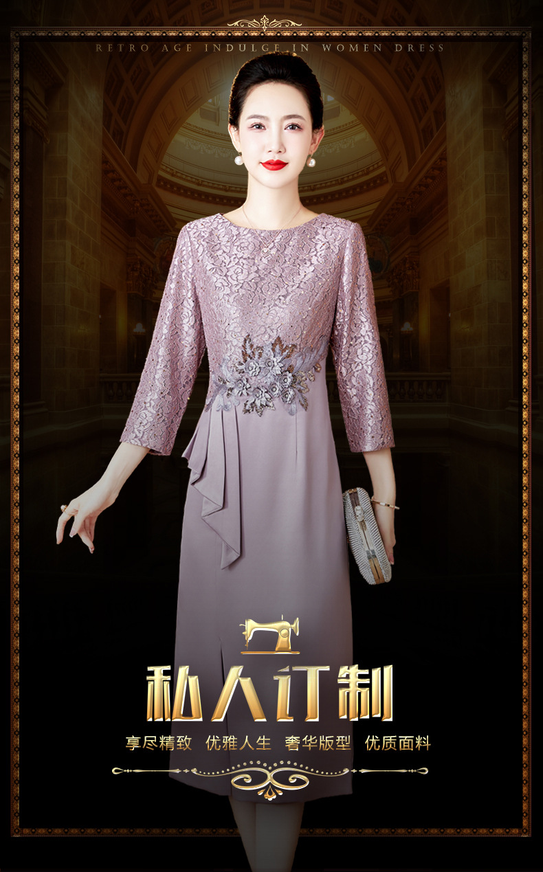 LC-2397新娘结婚礼服修身旗袍连衣裙气质高档喜妈妈嫁女儿礼服