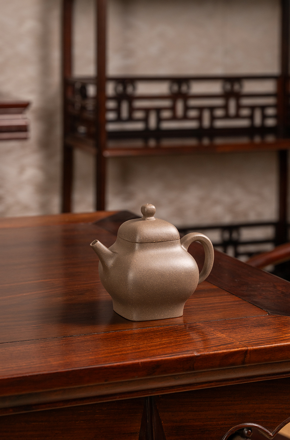 清 红木束腰拐子纹器座