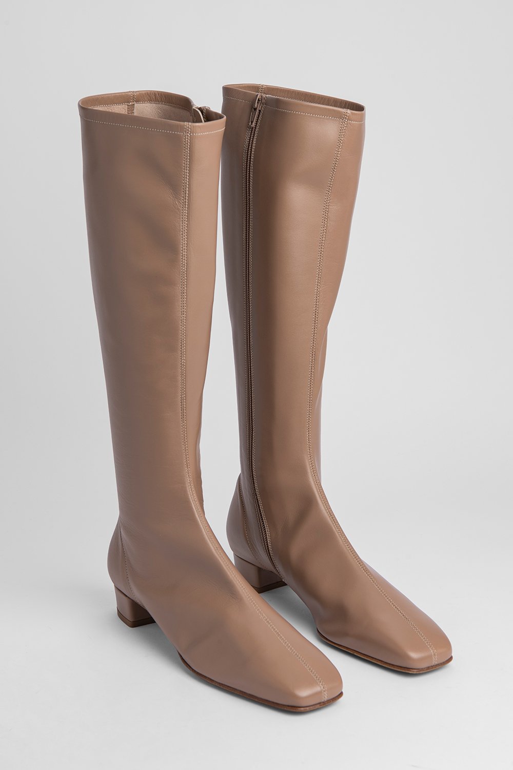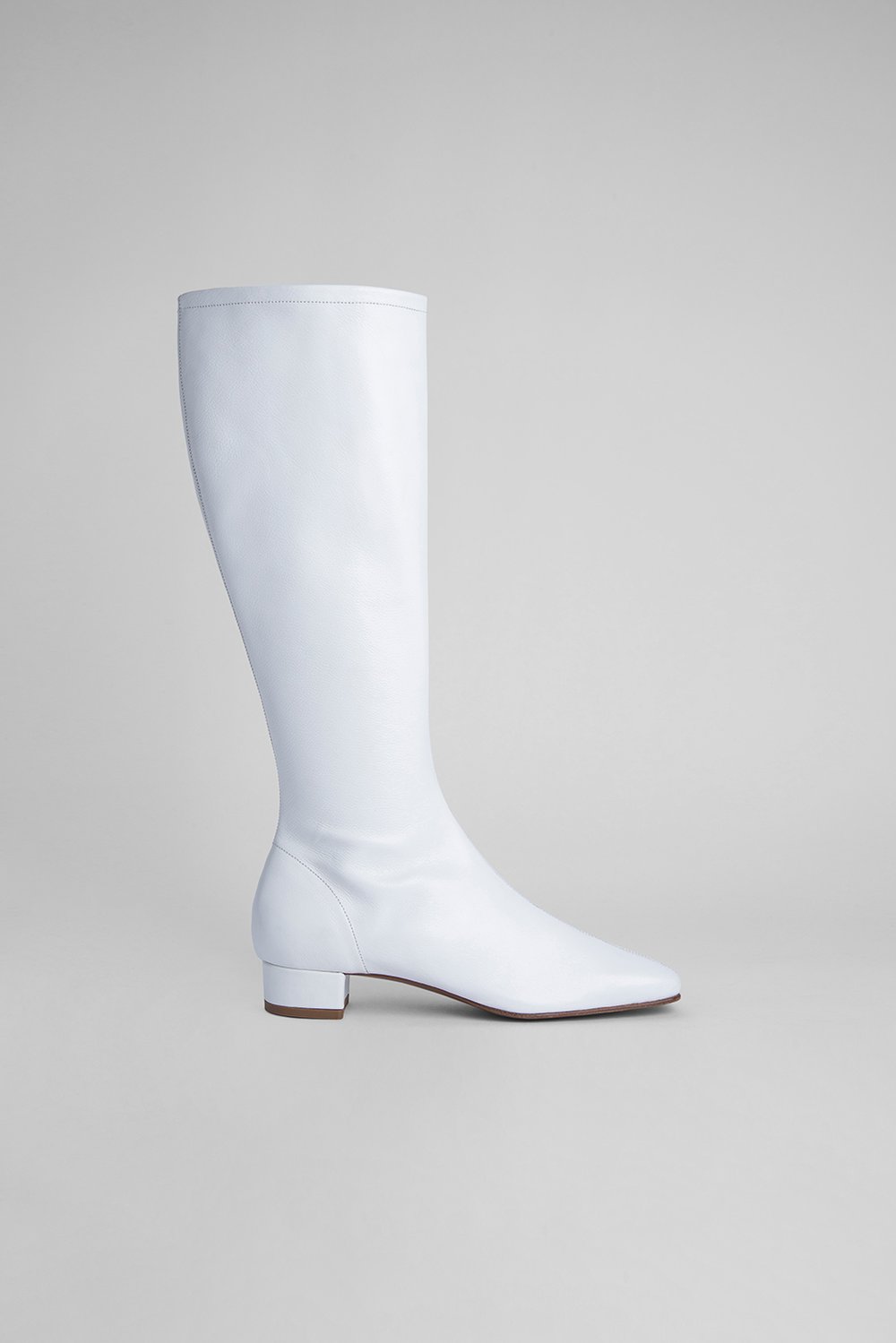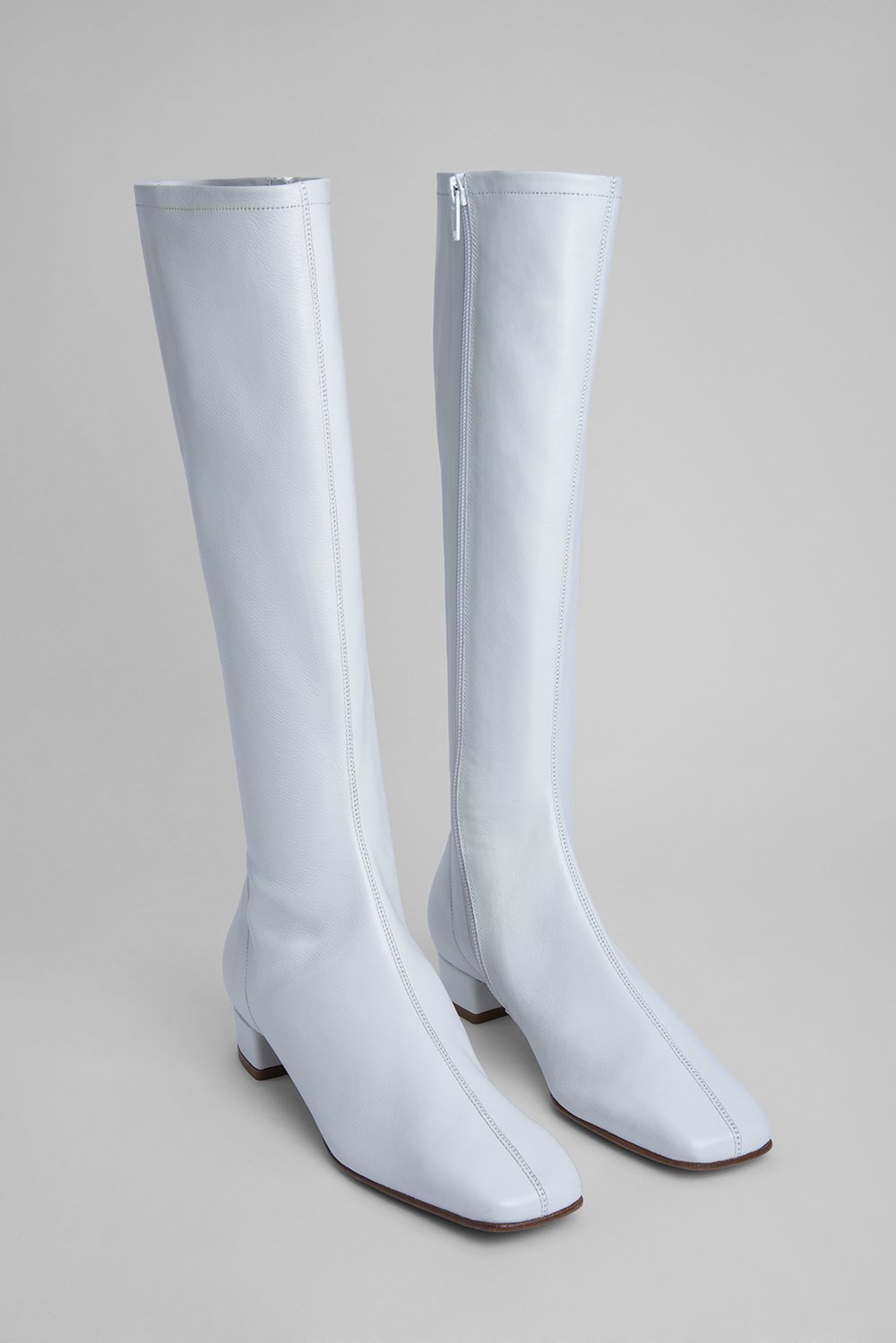 选用细密柔软的牛皮制作,方形鞋头与中线相衬,更具洗练的现代感,同时巧妙地修饰踝部与腿部的线条。现有卡其色、白色,裸色和黑色可选。