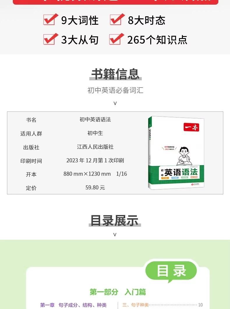 2025版一本初中英语语法词汇全解专项训练知识点大全基础书高频