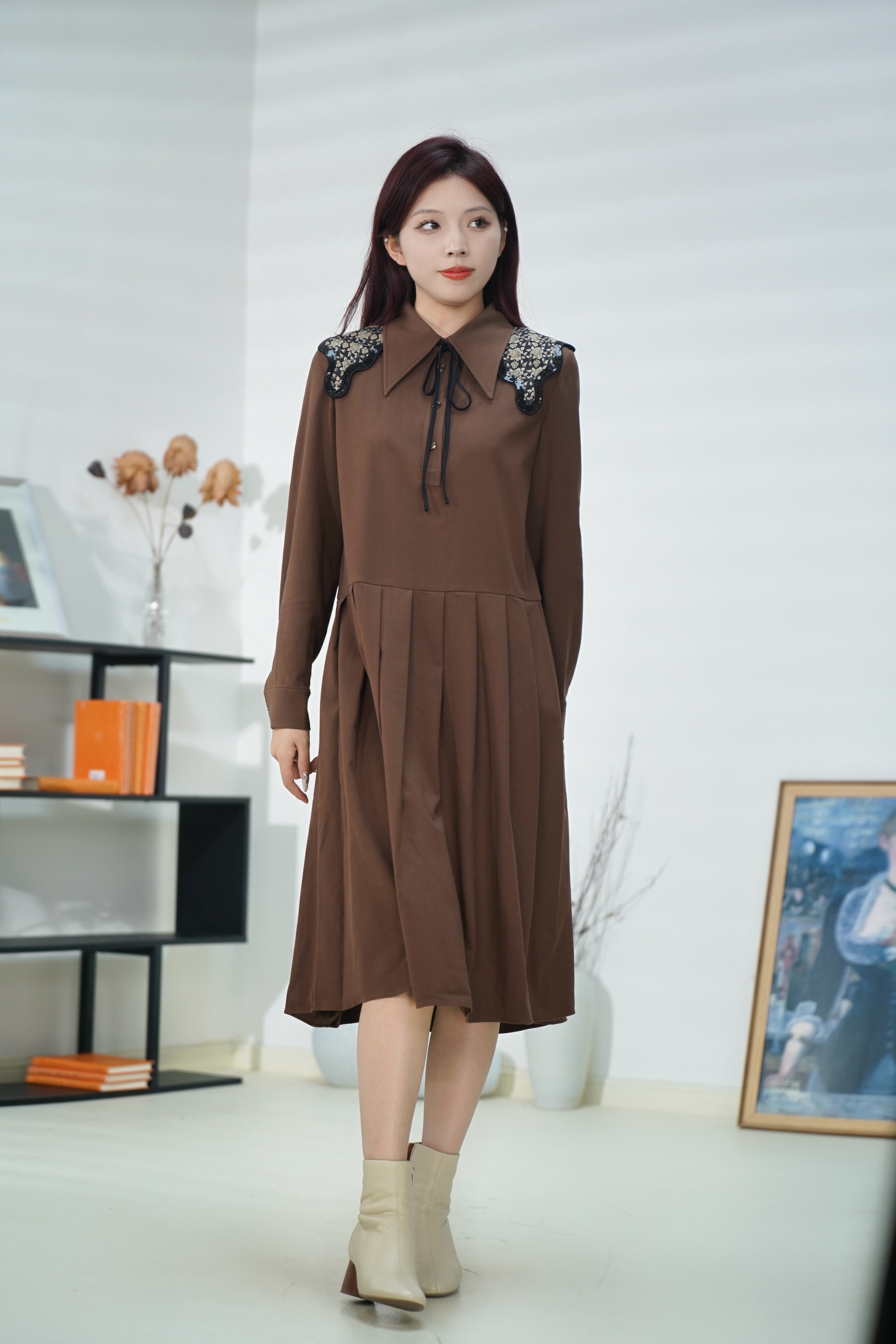 【L1】D63尖角长袖连衣裙5W4L94030