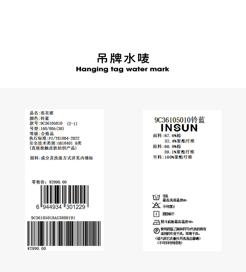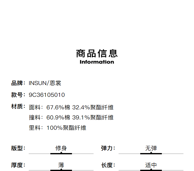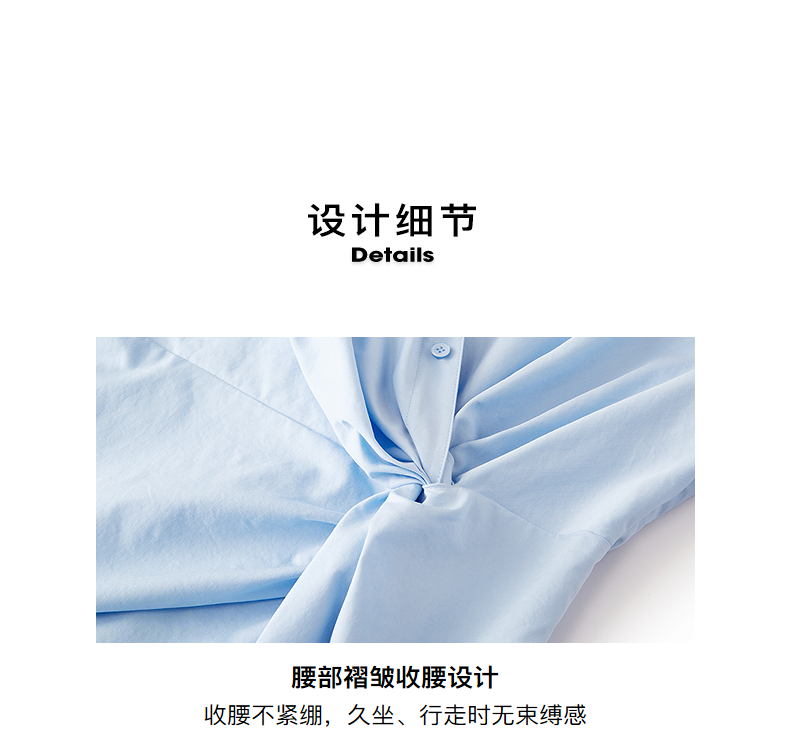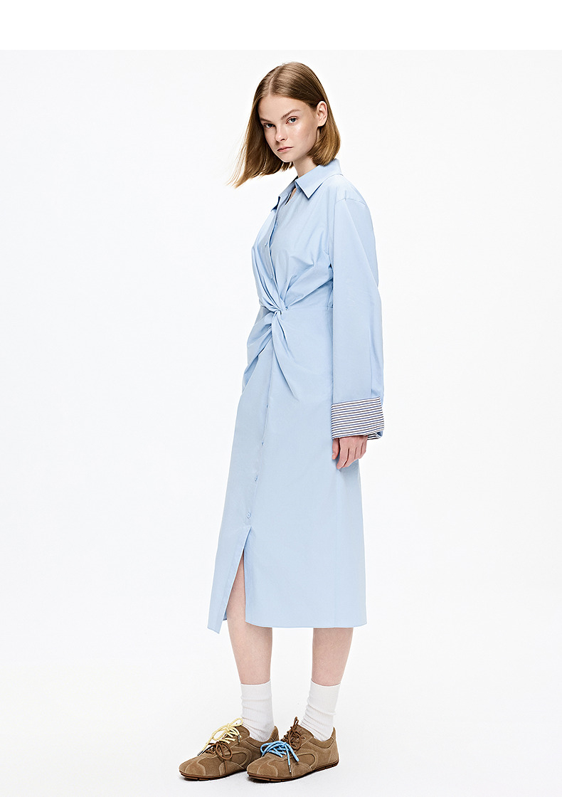 INSUN恩裳衬衫领褶皱收腰高支棉长袖连衣裙