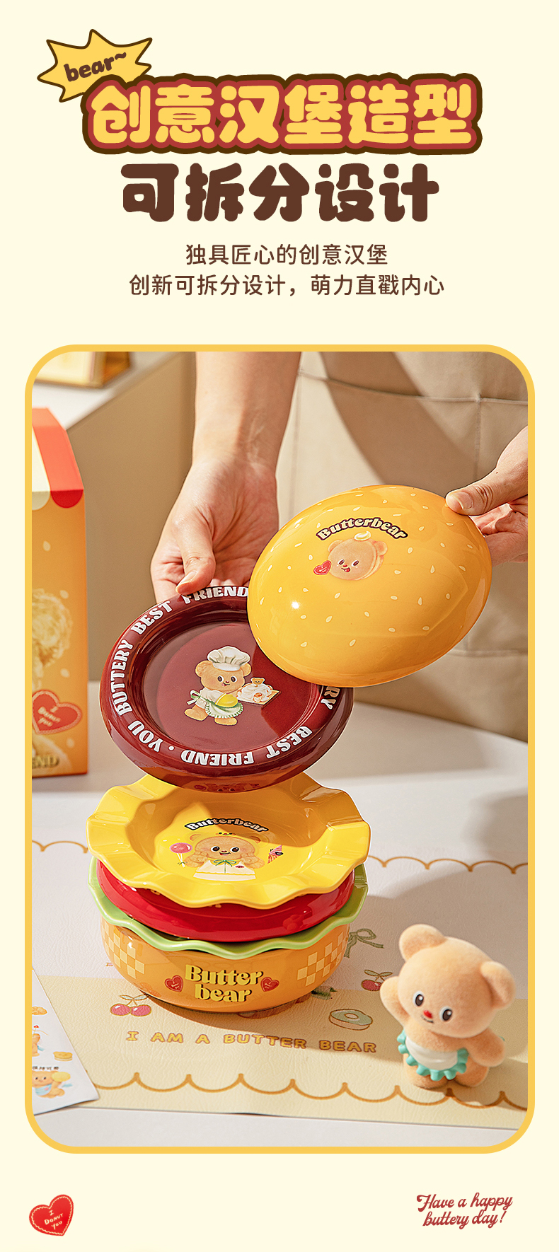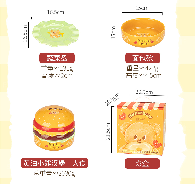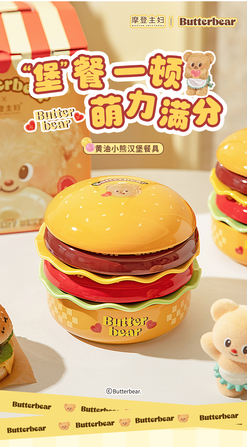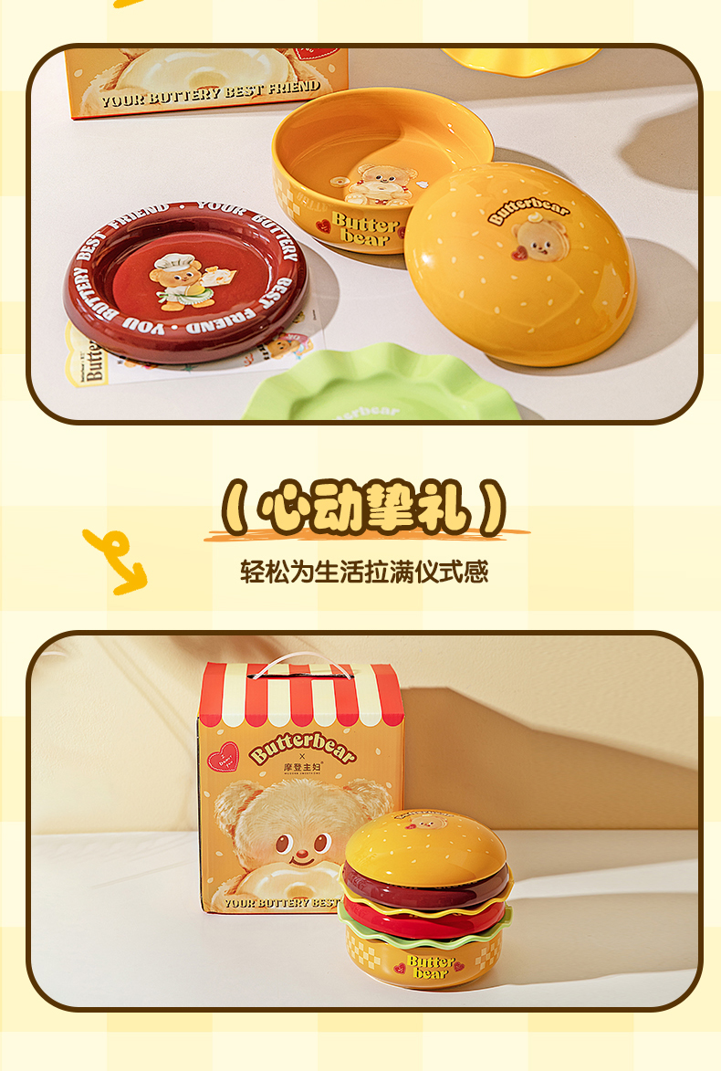 摩登主妇&黄油小熊 汉堡包餐具套装碗碟家用盘子餐盘生日礼物