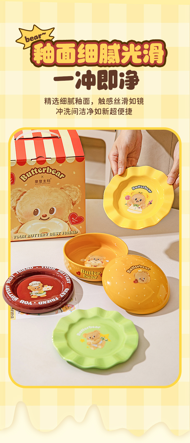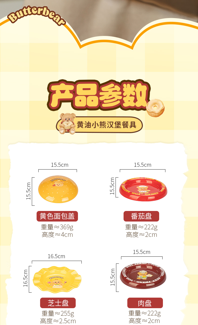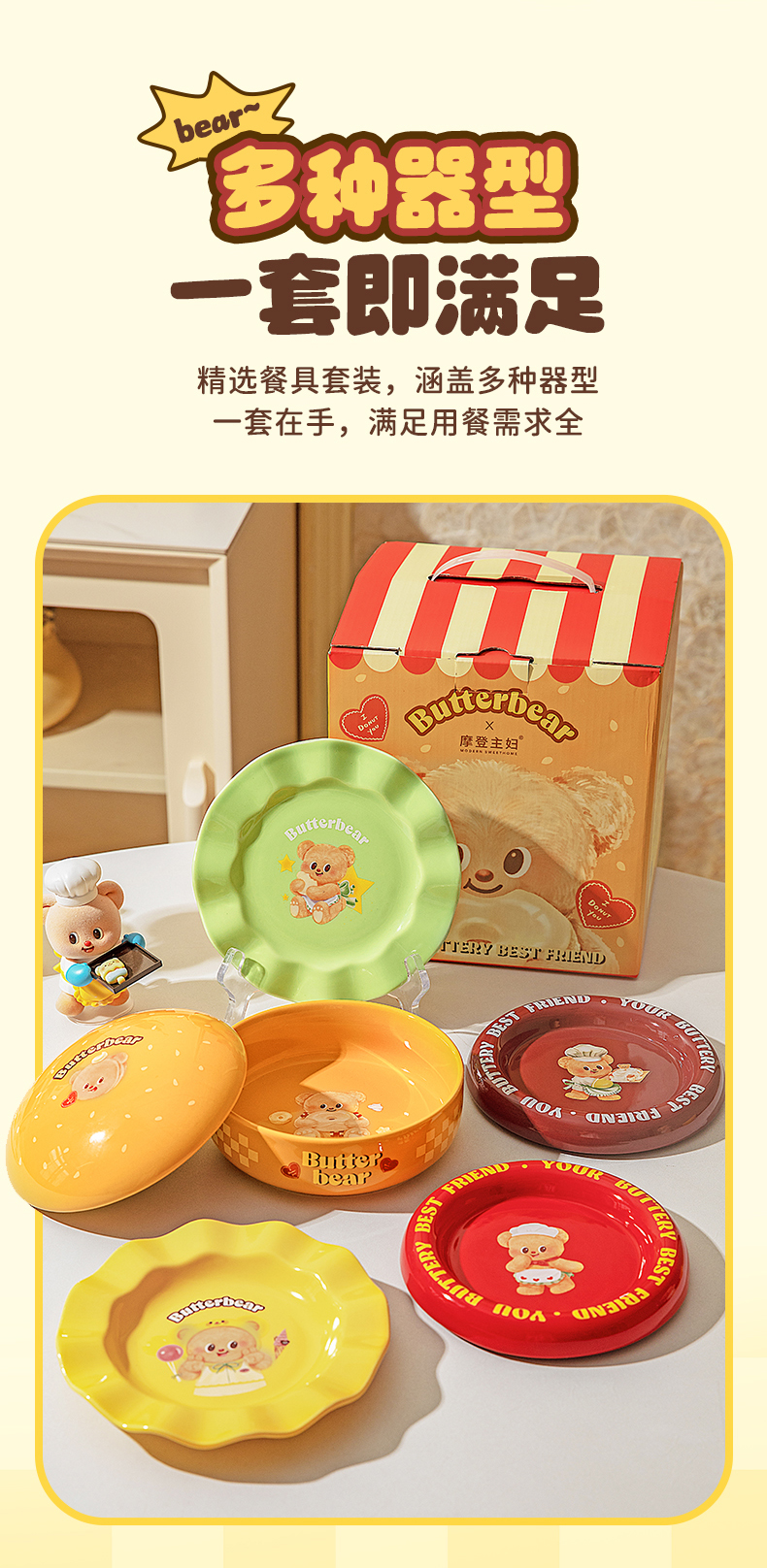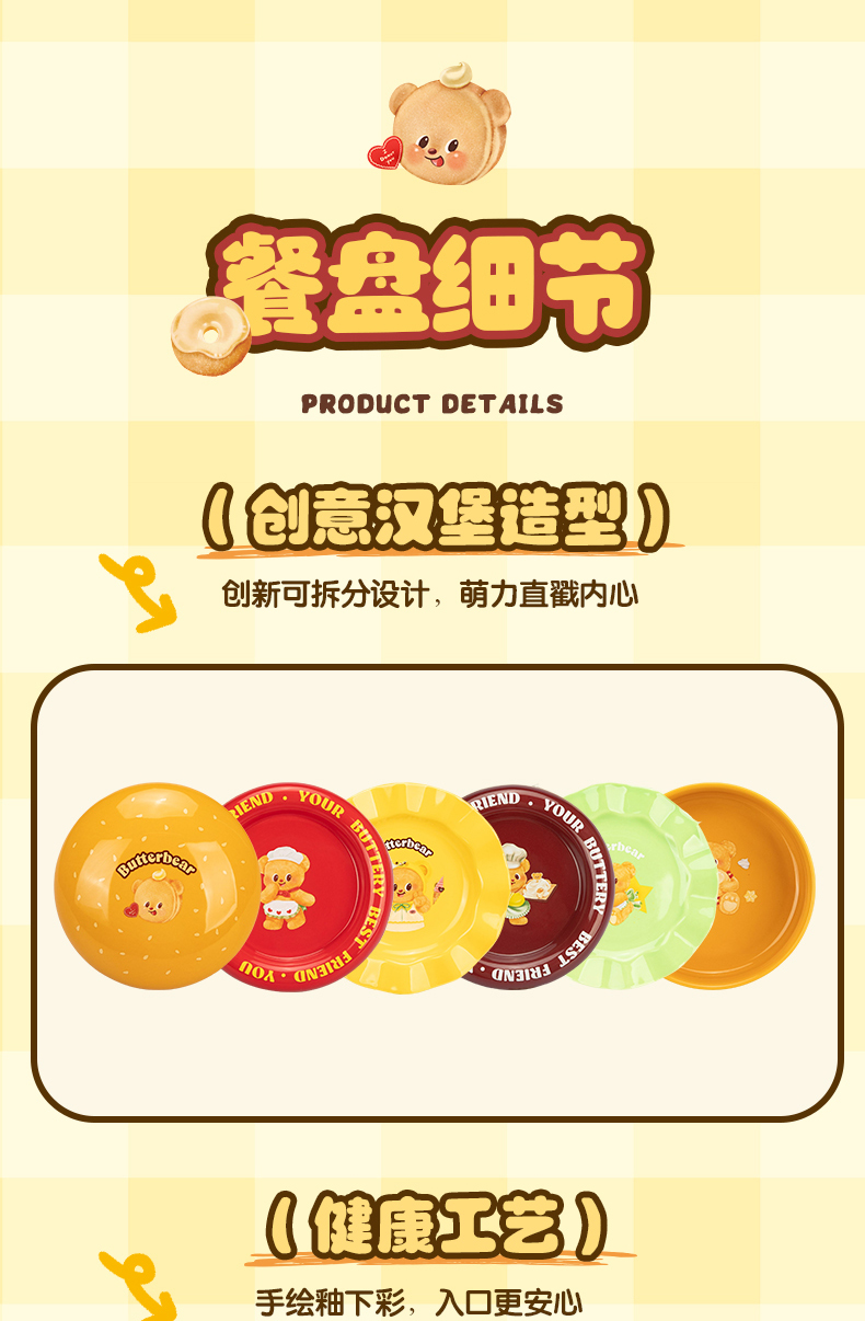 摩登主妇&黄油小熊 汉堡包餐具套装碗碟家用盘子餐盘生日礼物