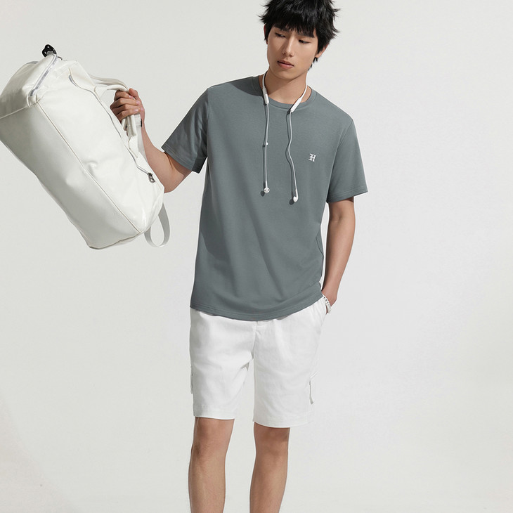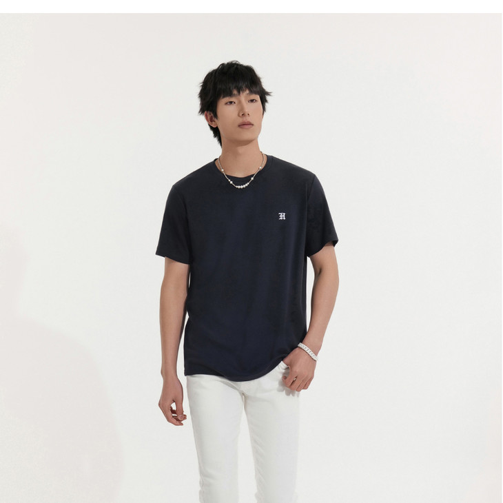 HIM漢崇 柔软休闲圆领T恤简约设计感压花舒适短袖上衣 2026夏季