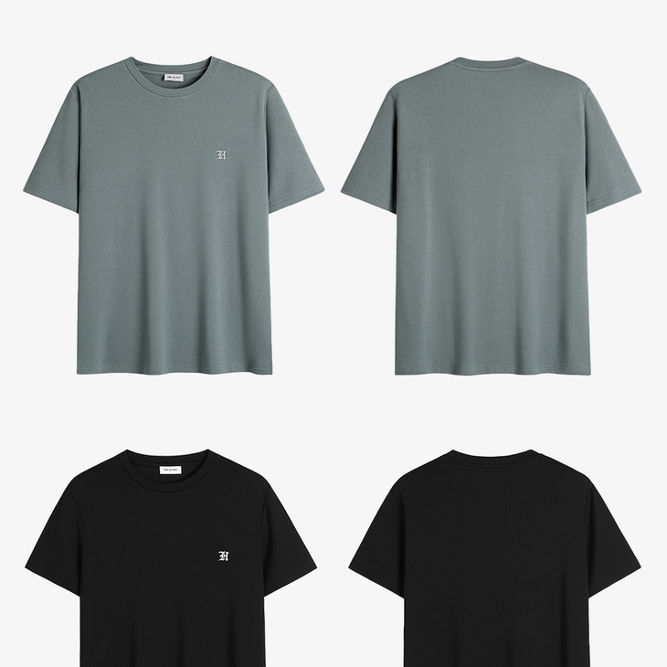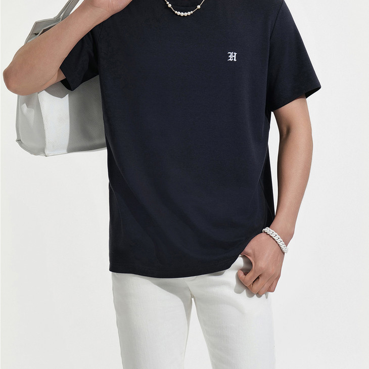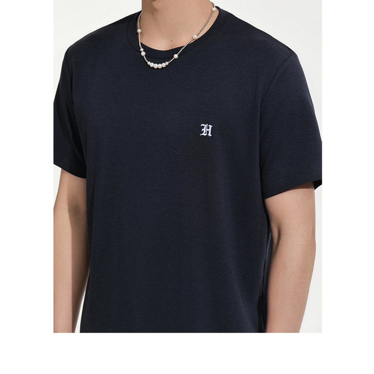 HIM漢崇 舒适透气圆领T恤男简约字母绣花纯色柔软打底衫 2026夏季