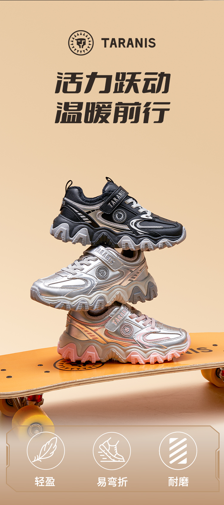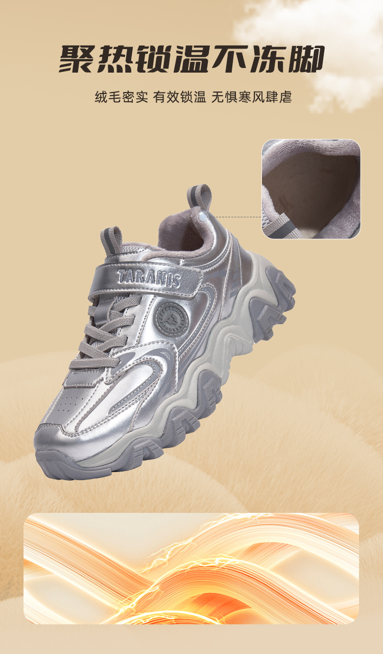 【新品】泰兰尼斯中大童冬款加绒保暖耐磨防滑时尚运动鞋T01D5D8431