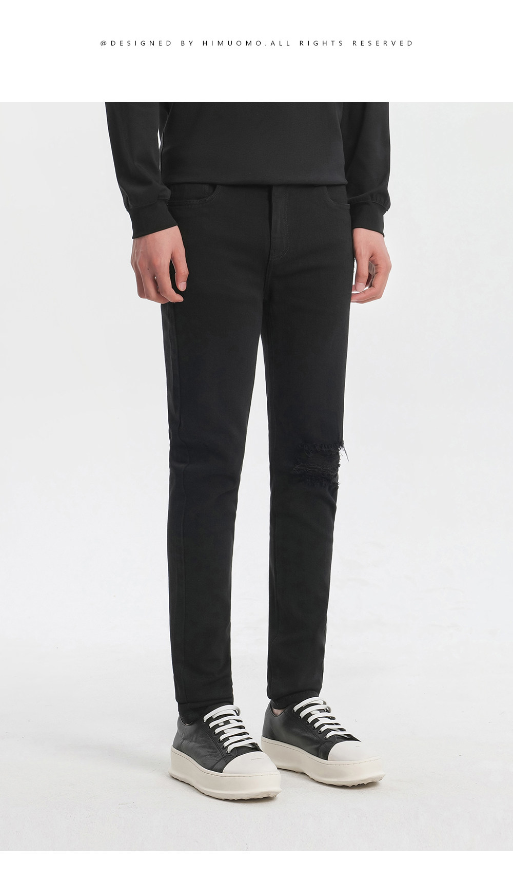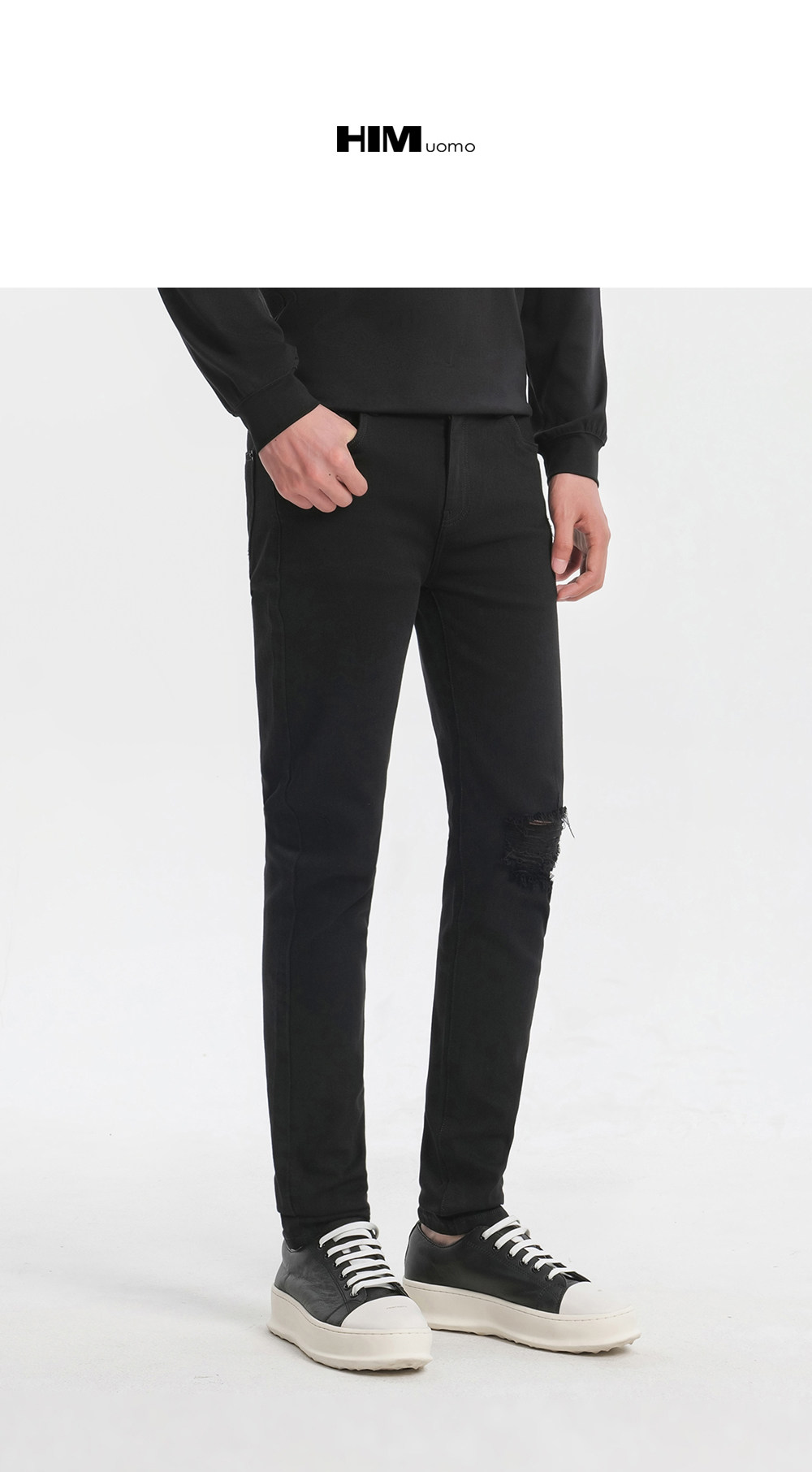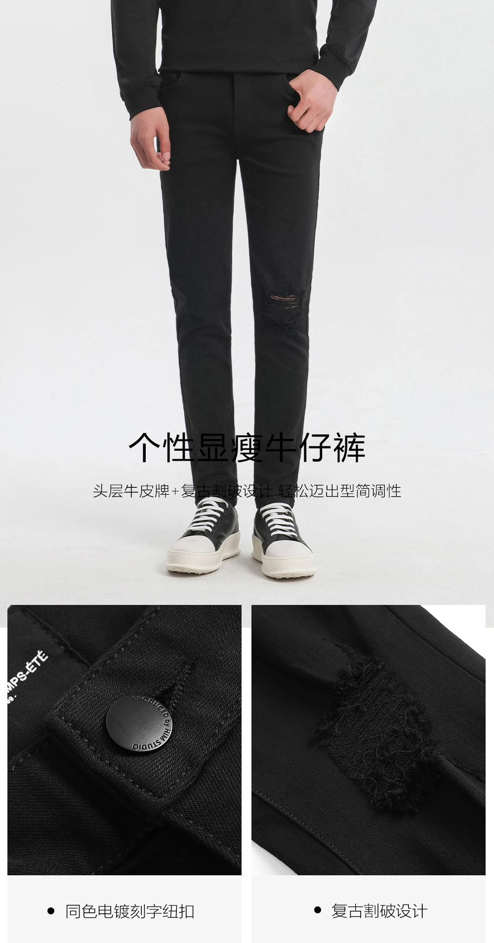 HIM漢崇 破洞牛仔裤男潮流磨破微弹舒适休闲修身小脚裤 2026夏季