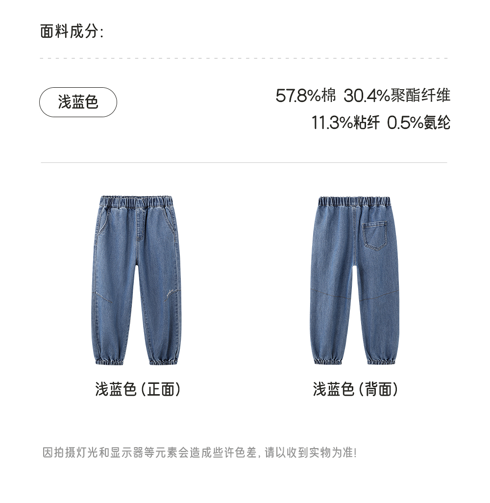 英氏儿童休闲长裤秋装新款中大童百搭裤子男童束脚牛仔裤