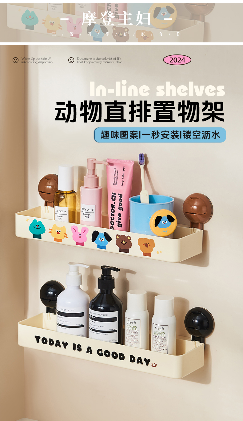 摩登主妇卫生间置物架浴室吸盘架子洗漱台墙上壁挂式免打孔收纳架