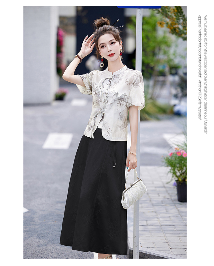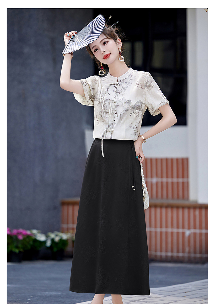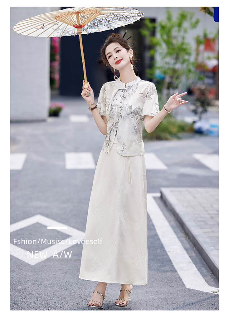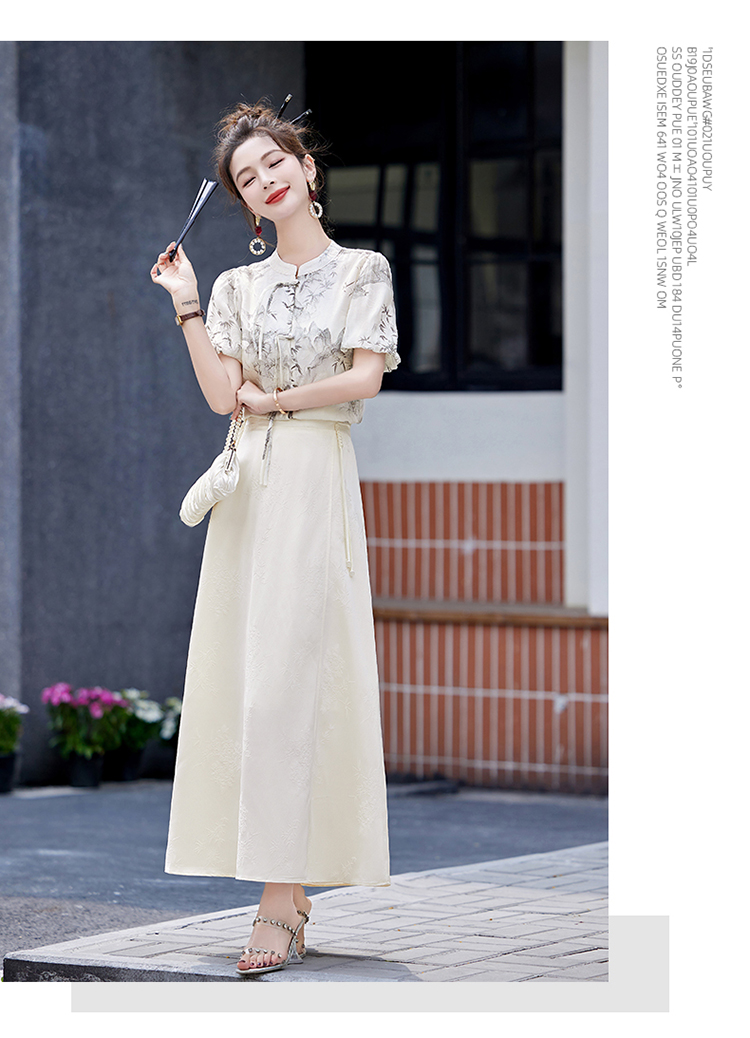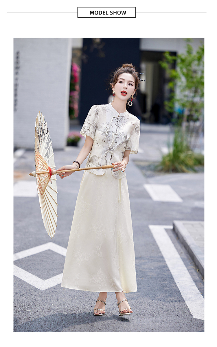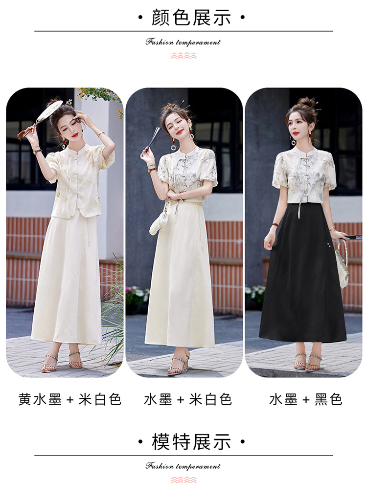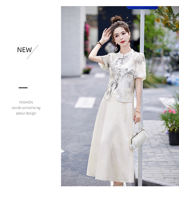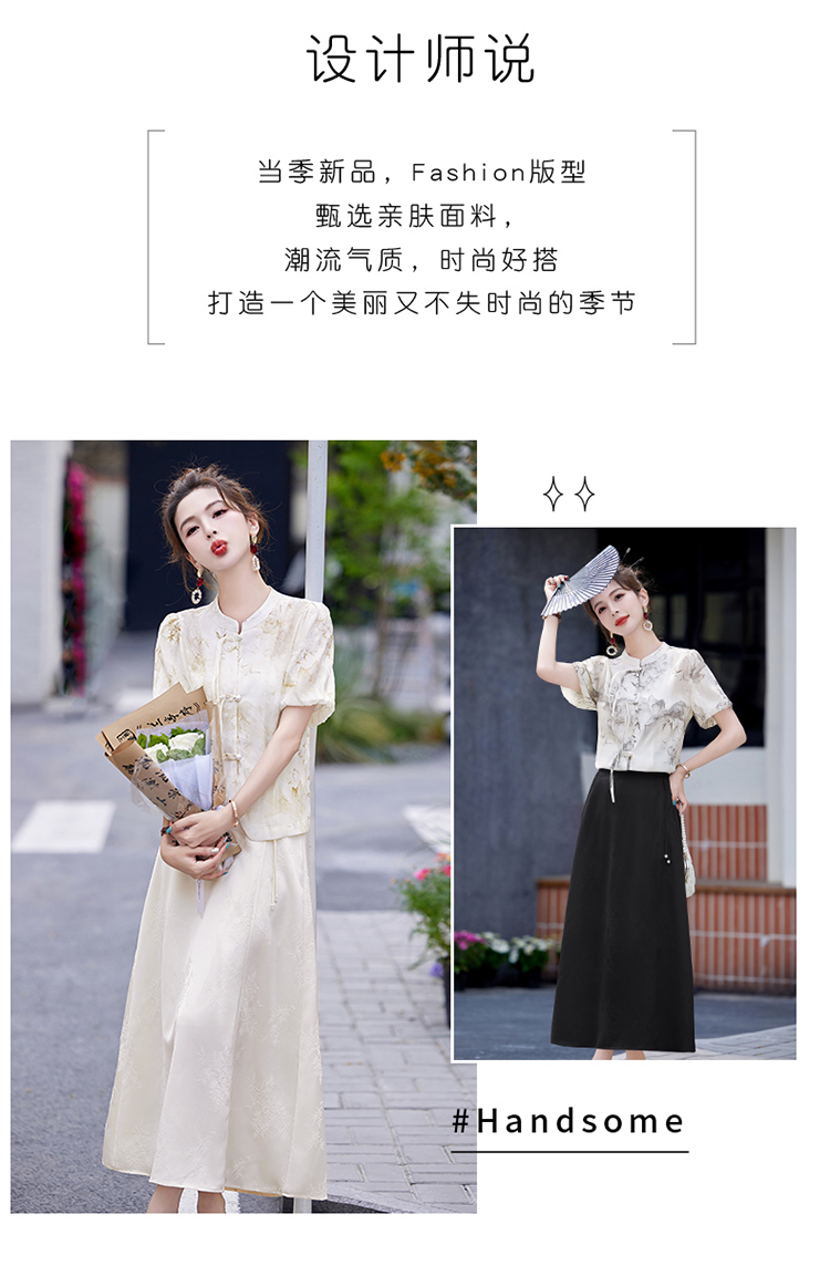 新中式风气质时尚,印花设计舒适清凉两件套裙HR-LMJY6685
