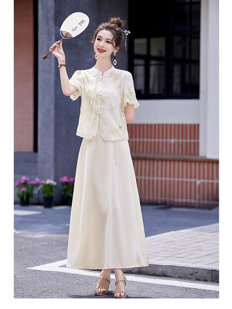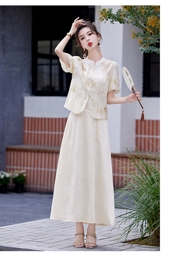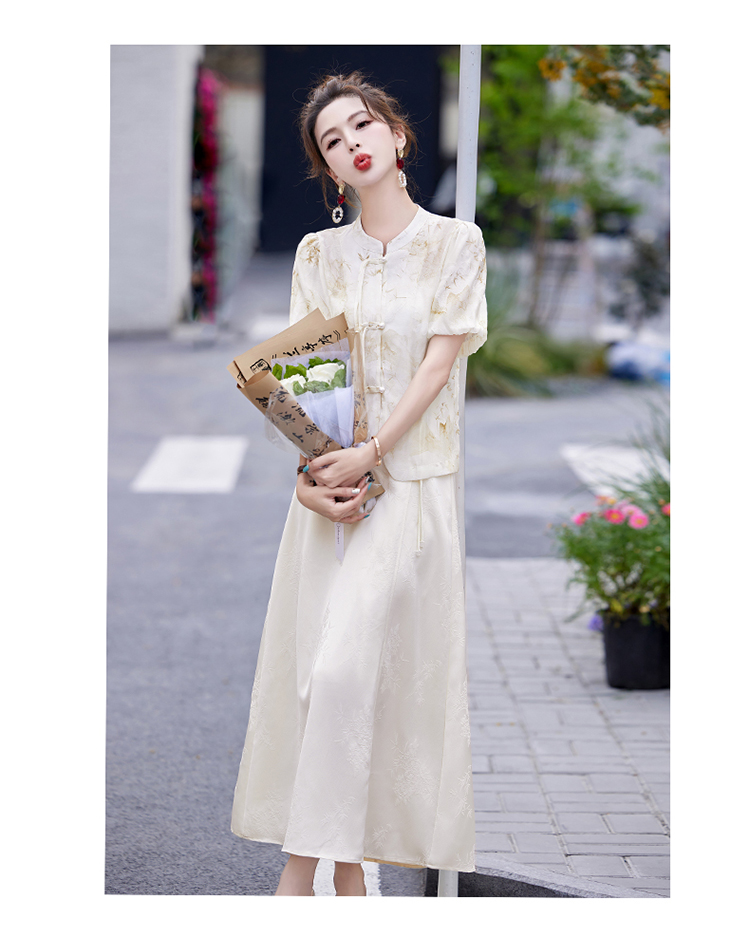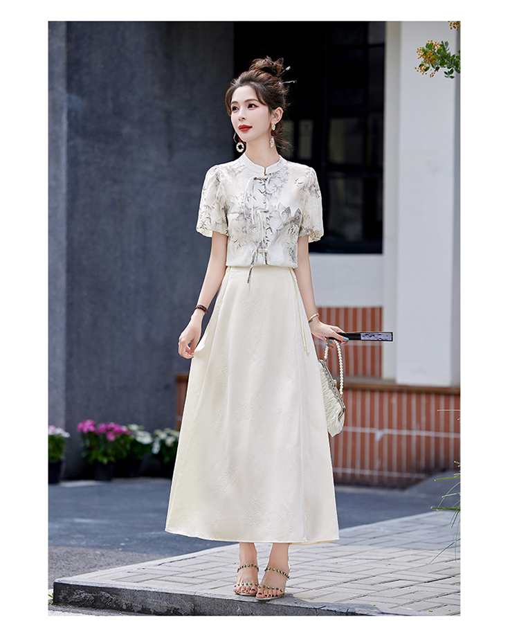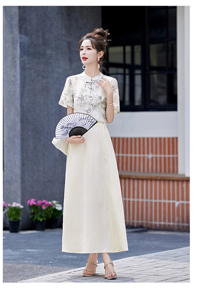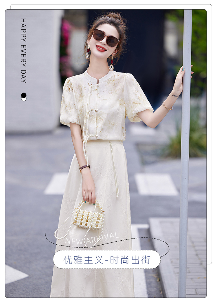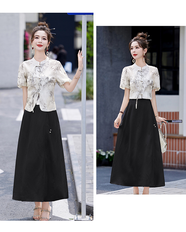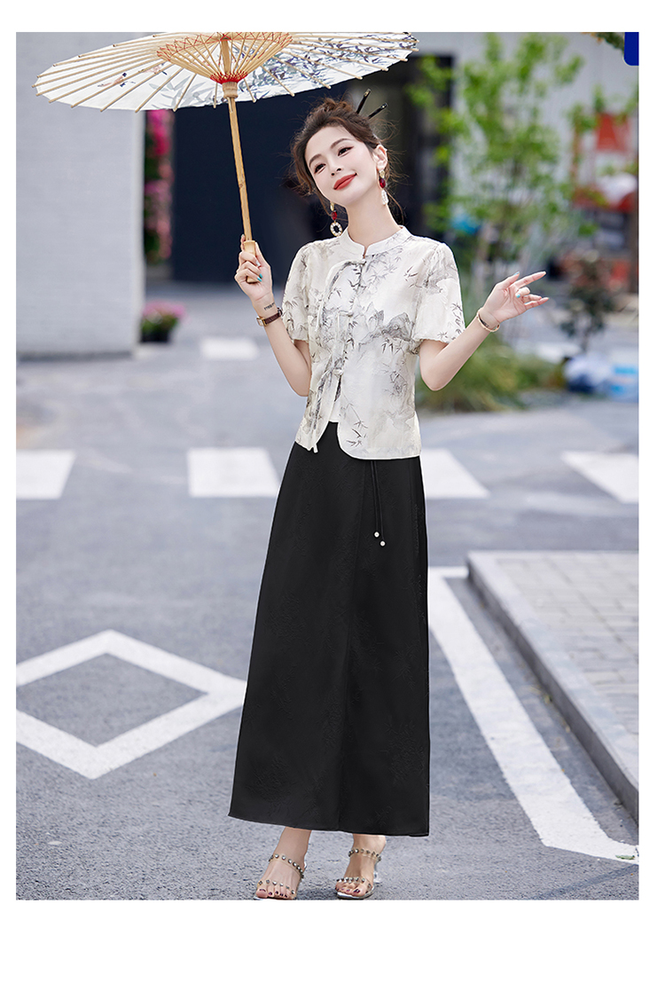 新中式风气质时尚,印花设计舒适清凉两件套裙HR-LMJY6685