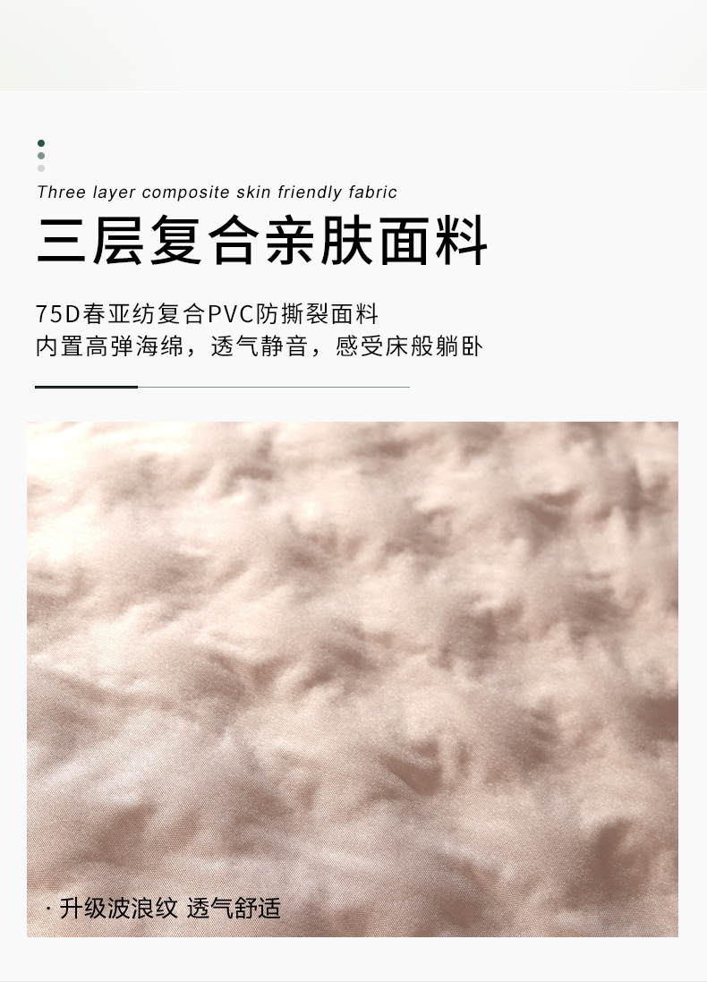 1、春亚纺复合面料,升级波浪纹,透气静音;
