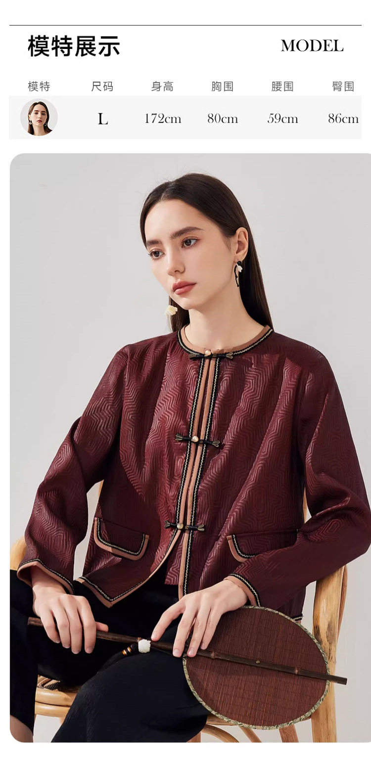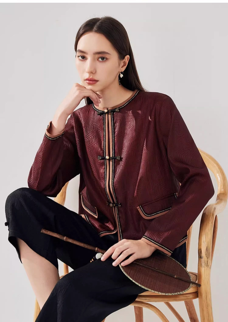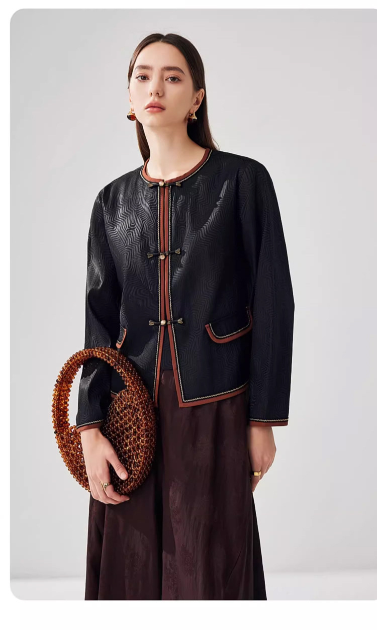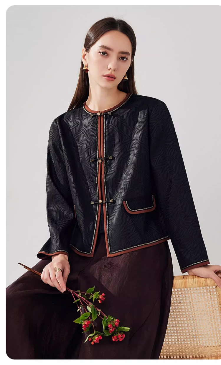 丁摩 真丝香云纱祥云提花缎外套女XZ18699