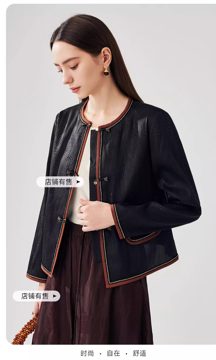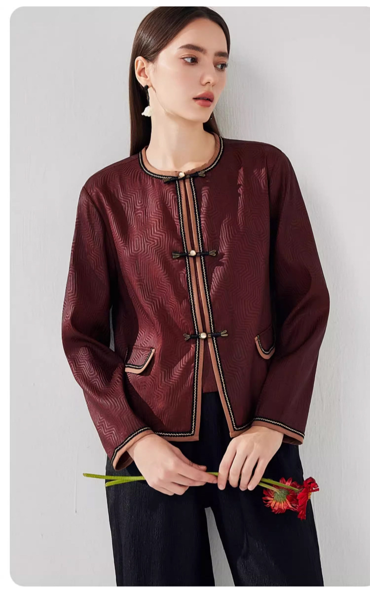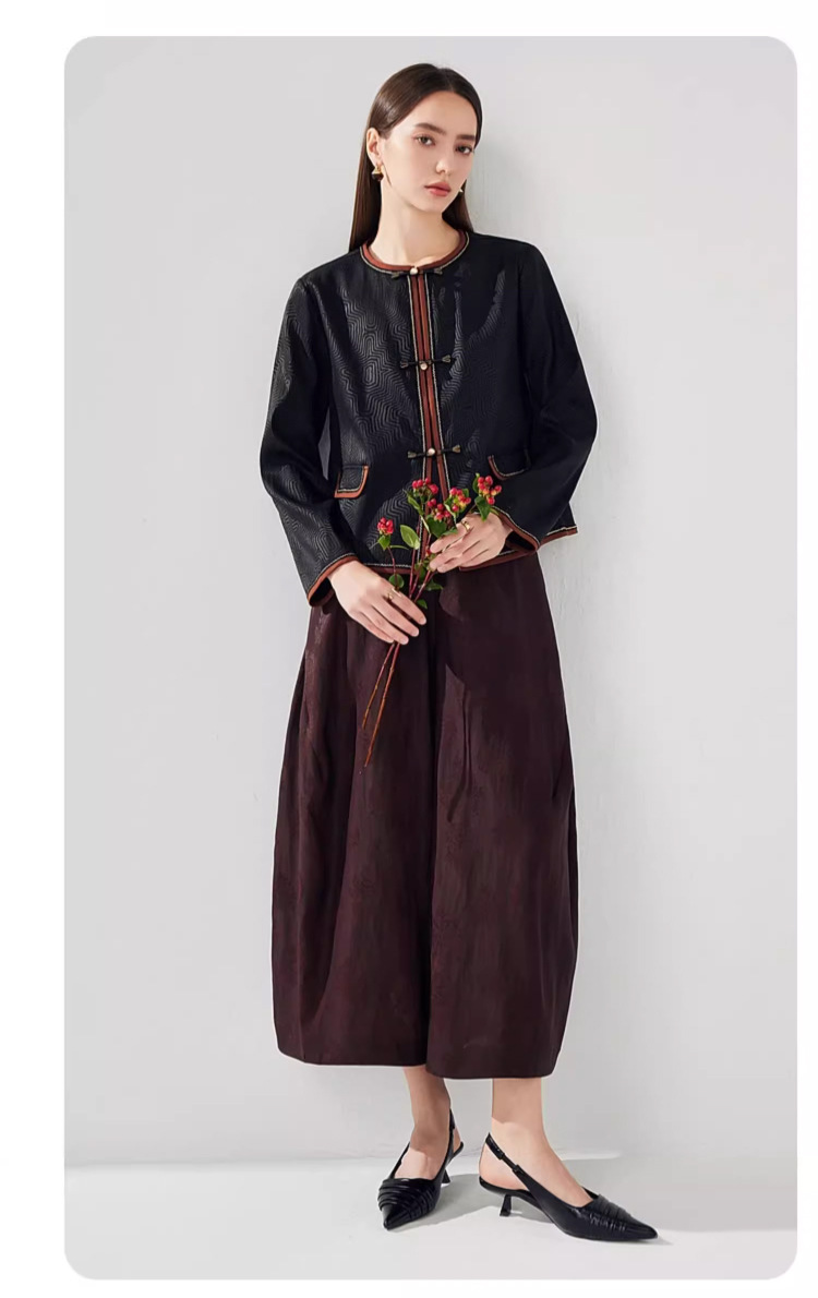 丁摩 真丝香云纱祥云提花缎外套女XZ18699