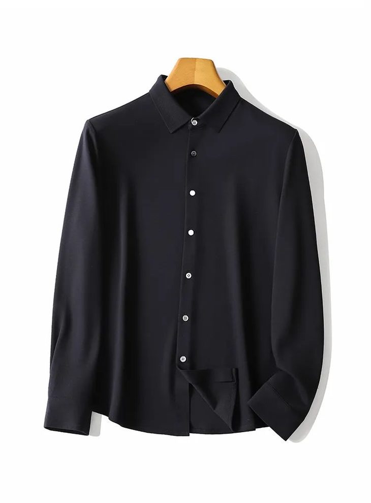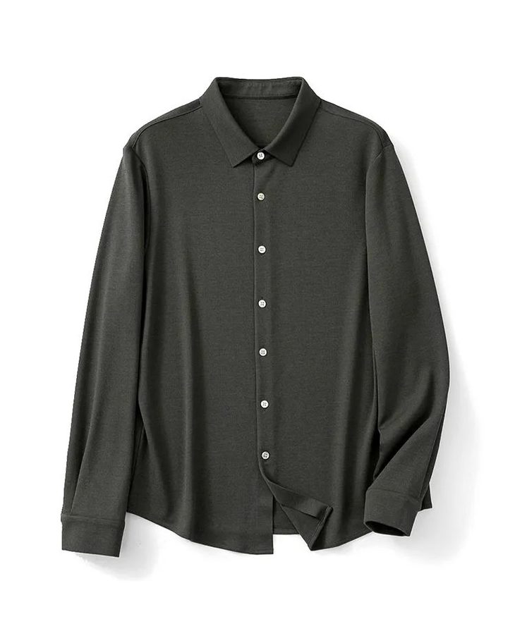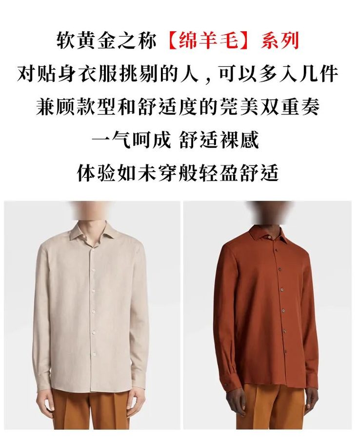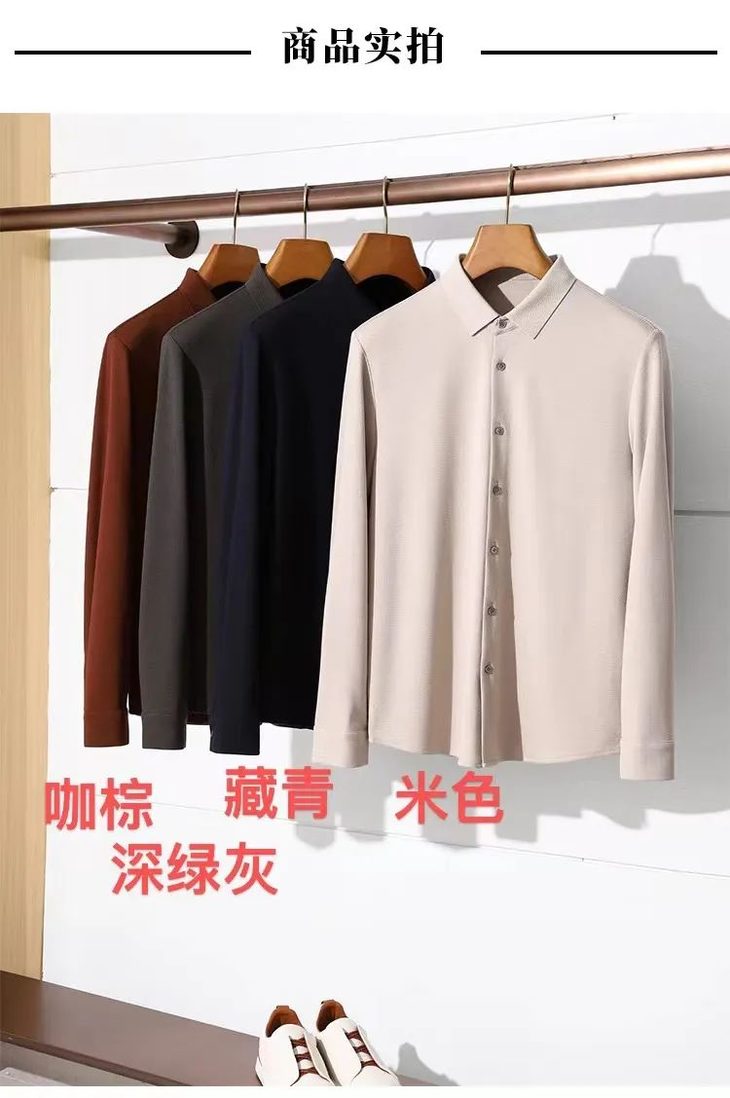杰尼亚同款商务休闲羊毛长袖衬衫