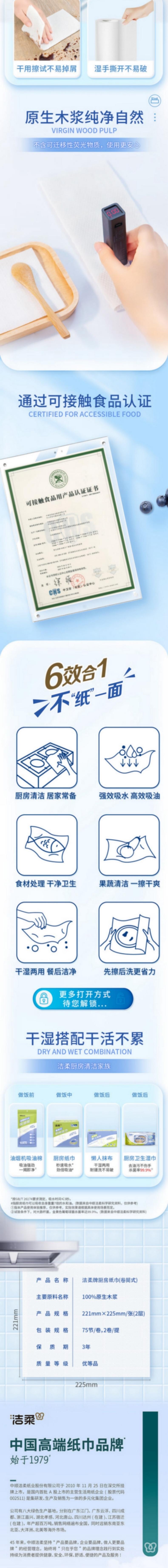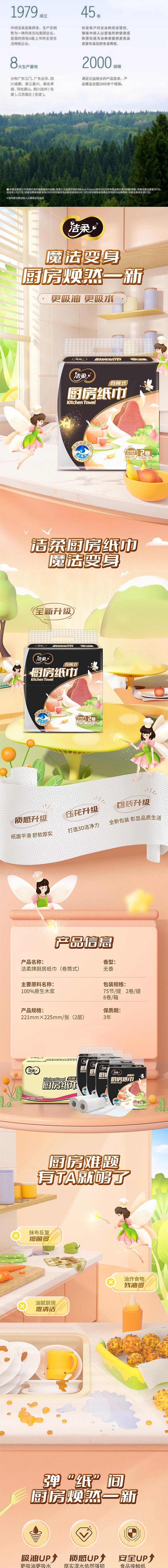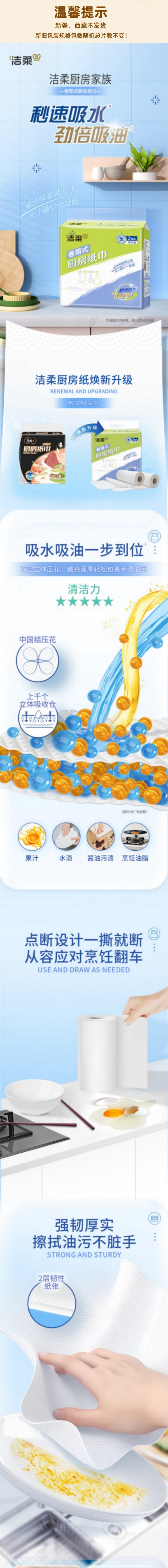 洁柔 厨房卷纸75节2卷*1提(新旧款式随机) JR87502E