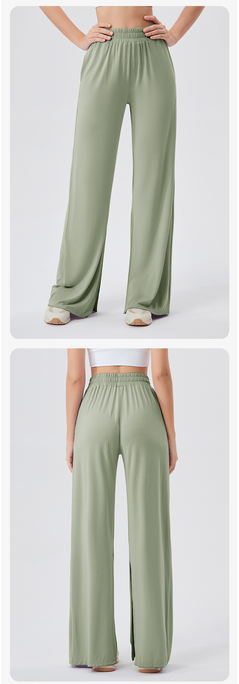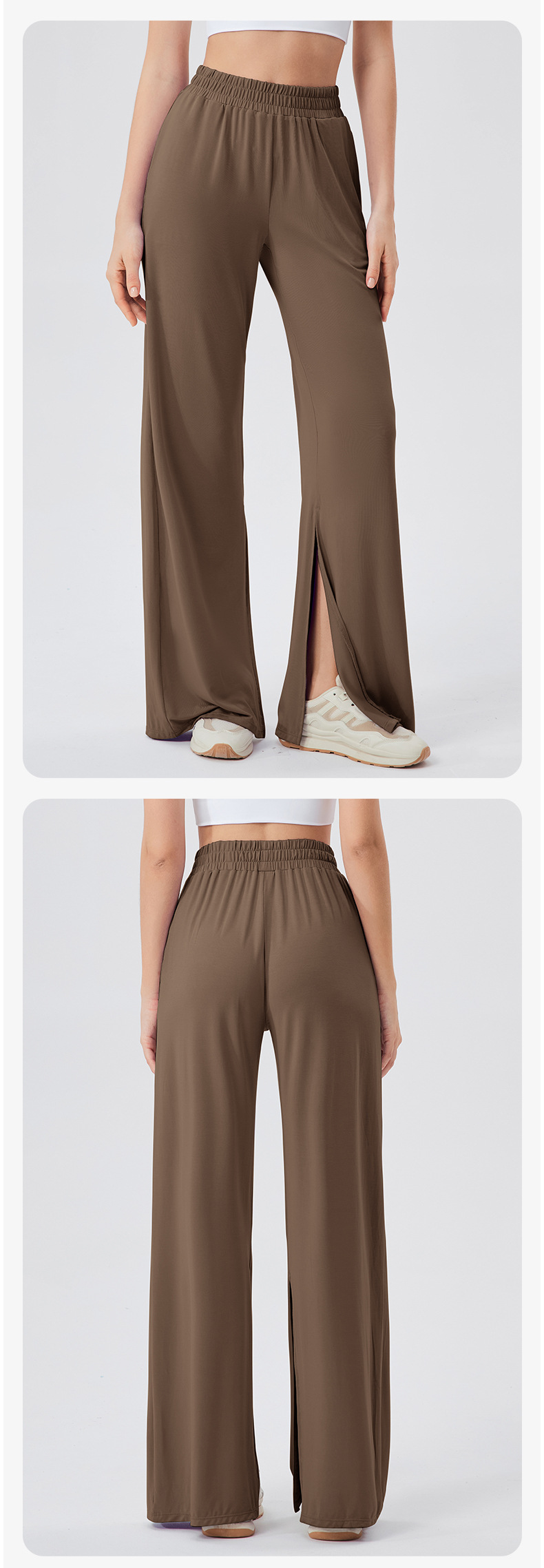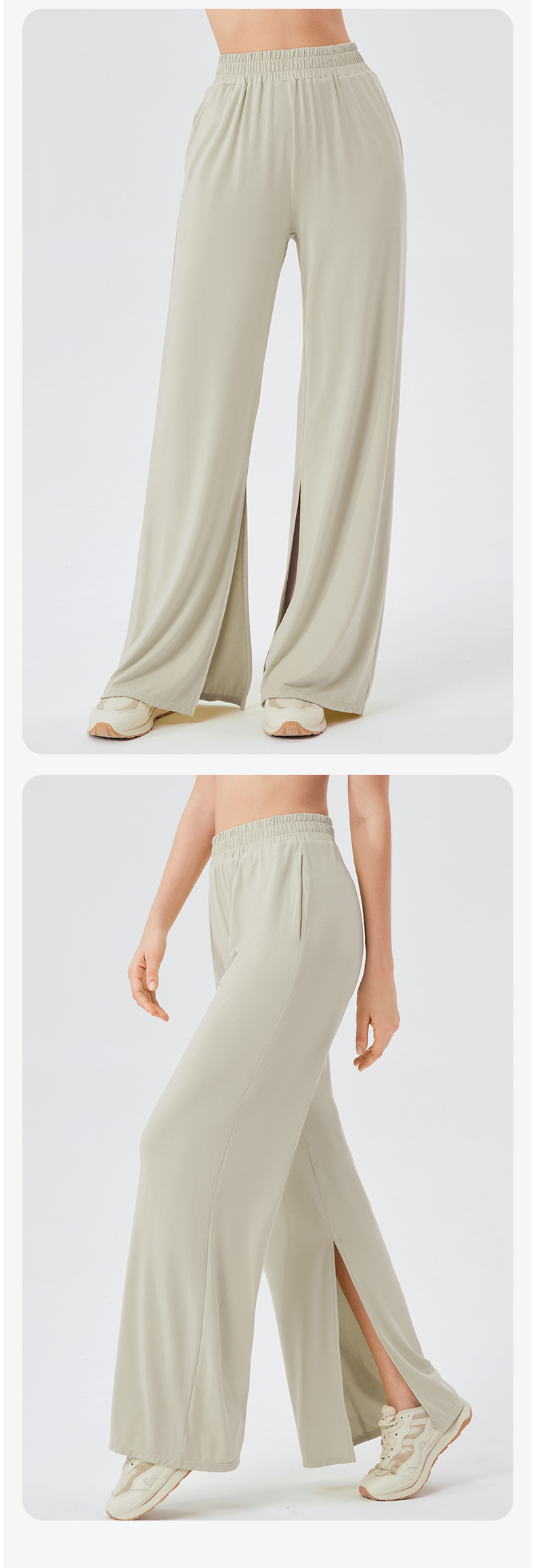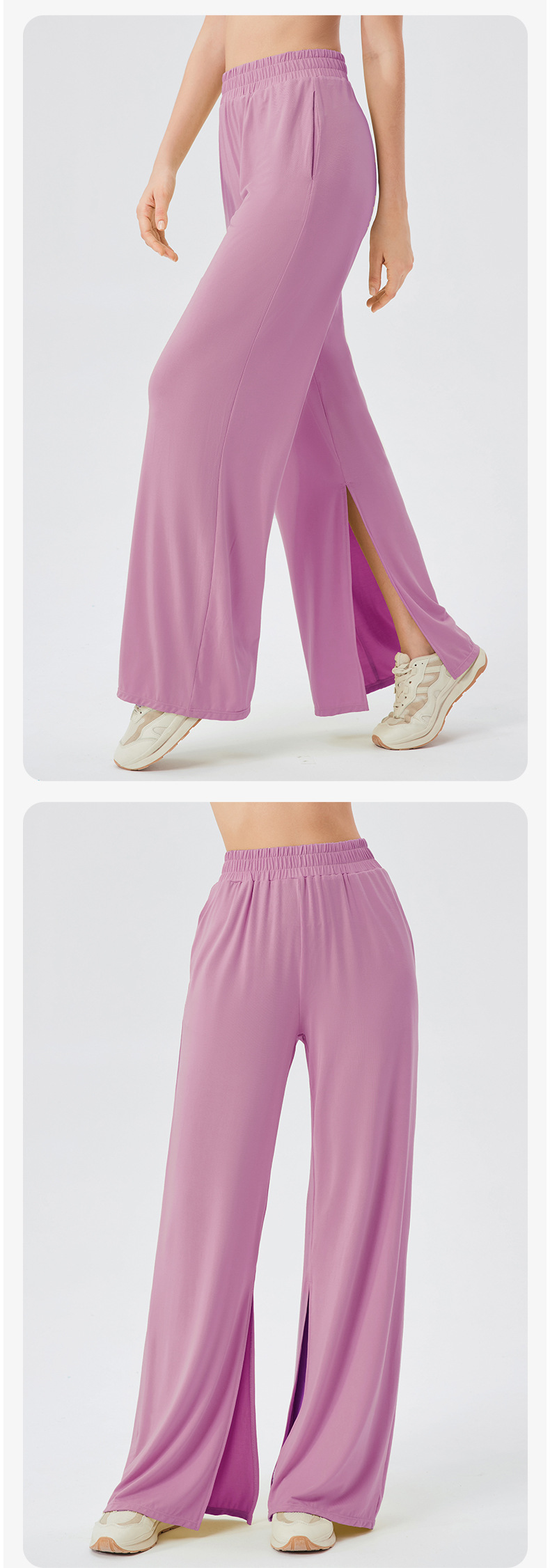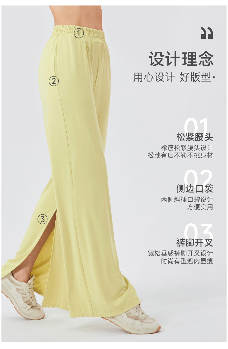 跃牌 【欲动春风】系列 女宽松运动长裤凉感透气健身休闲舞蹈裤垂感显瘦高腰开叉瑜伽长裤24022