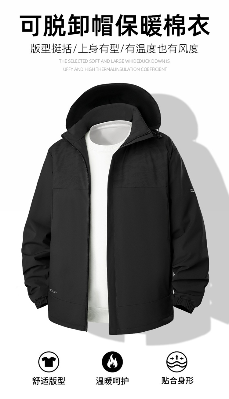 【DK】大依优型大码男装夹克外套棉服商务可脱卸帽上衣棉衣