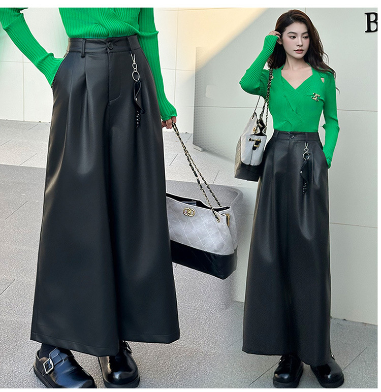 YM 8623-48时尚潮流皮裤阔腿裤洋气高腰垂感显瘦百搭休闲裤 商品图0