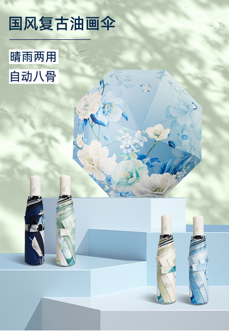 【国风复古油画系列❗️16骨黑胶晴雨伞】复古实木手柄,防紫外线抗风暴雨伞,手开晴雨伞,两用晴雨伞折叠伞,黑胶伞防晒帽太阳伞雨衣遮阳伞夏日L