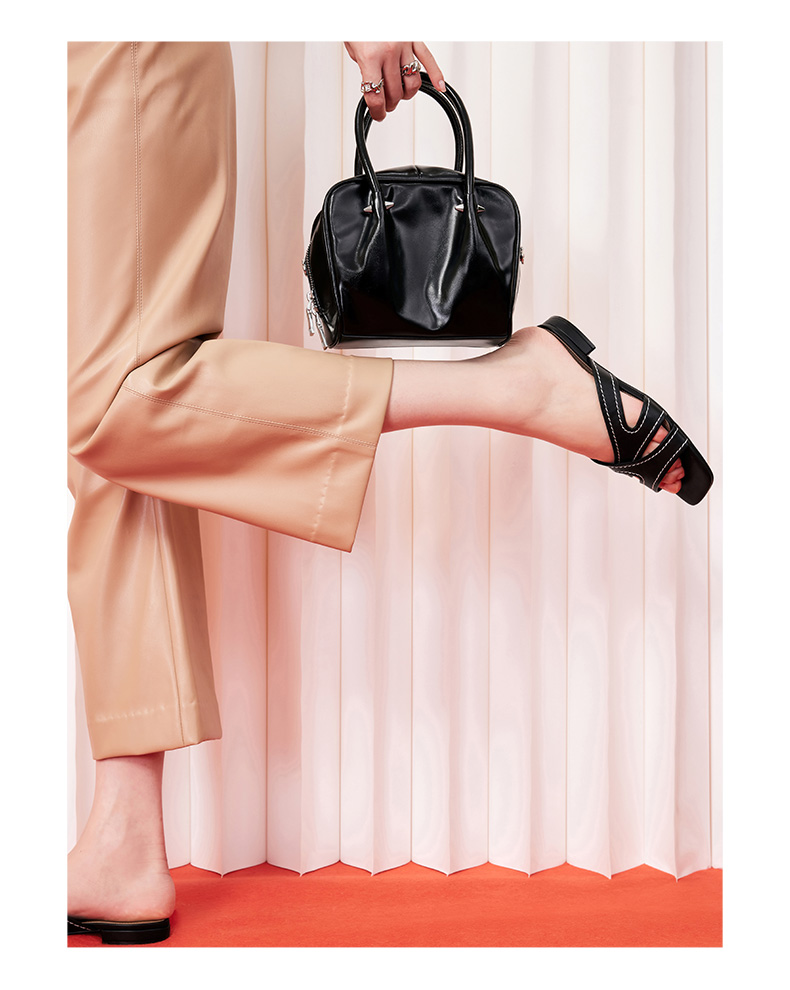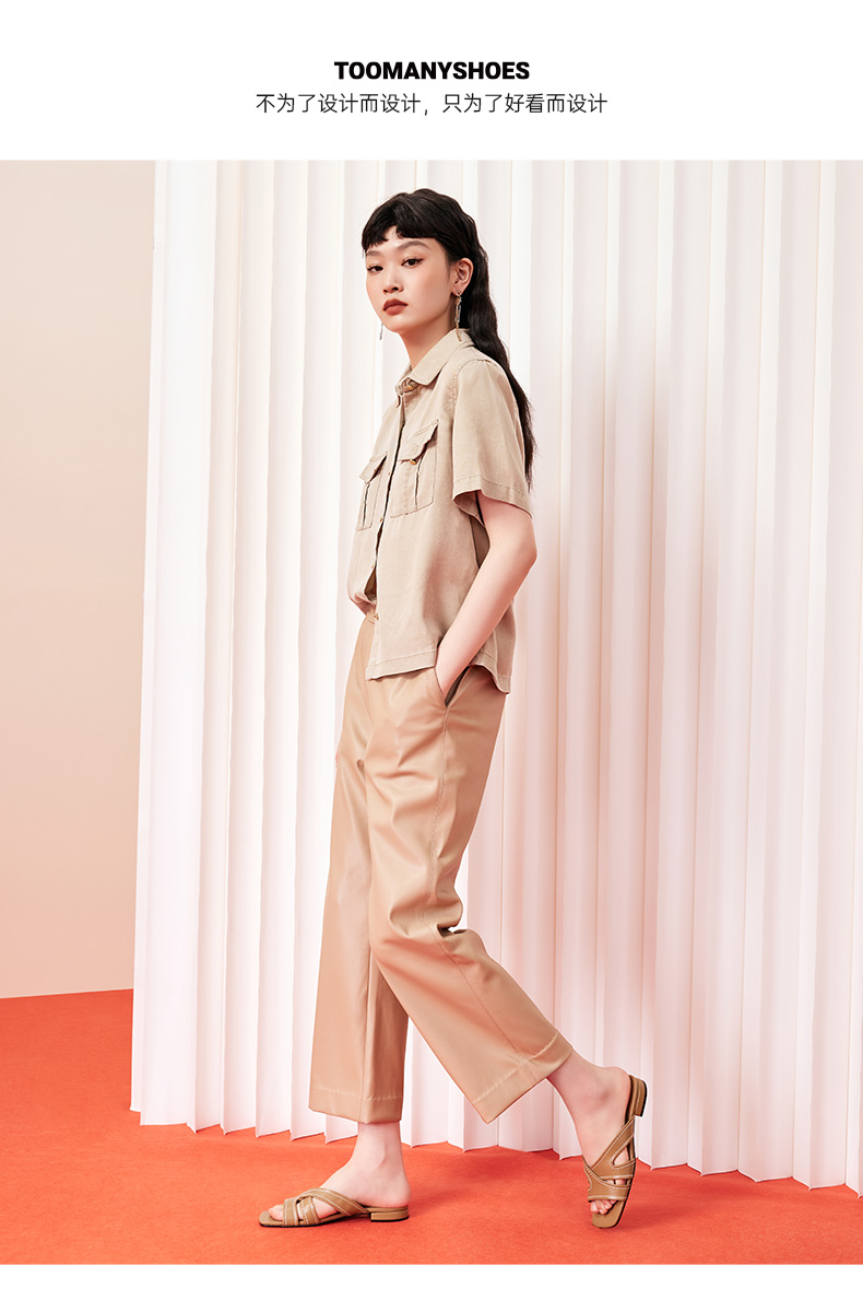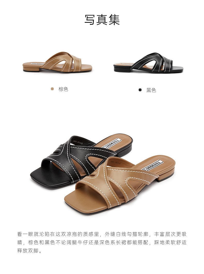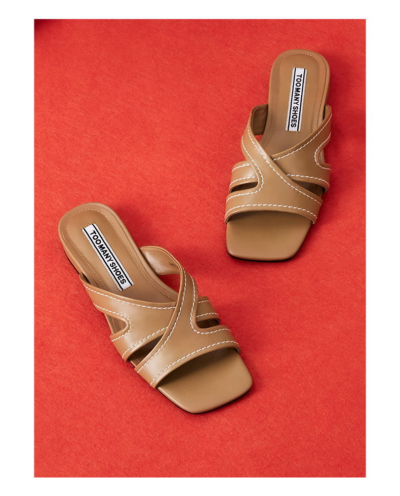 Toomanyshoes写真集方头平底凉拖外穿高级感交叉带拖鞋女