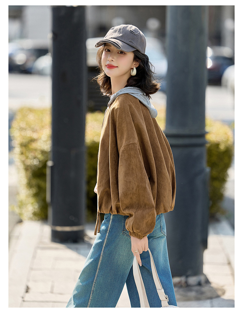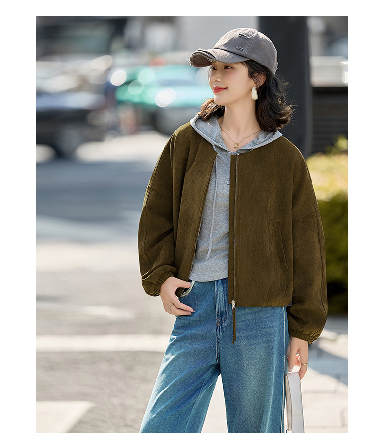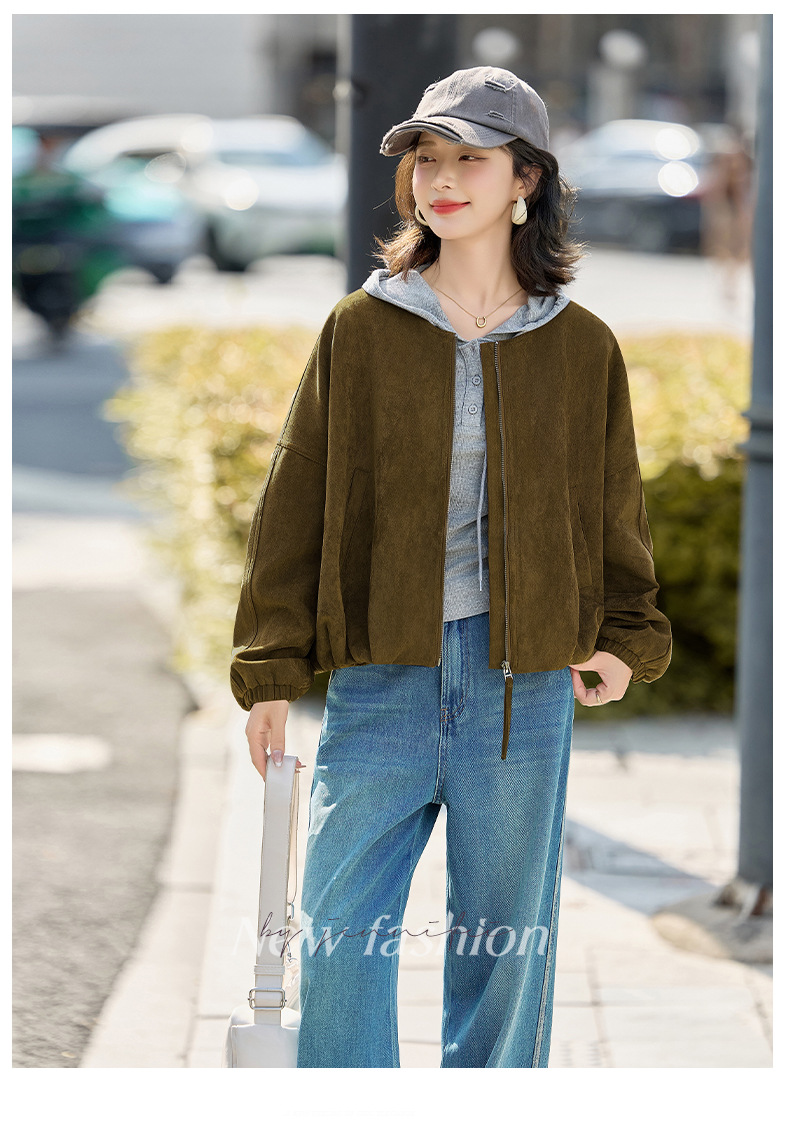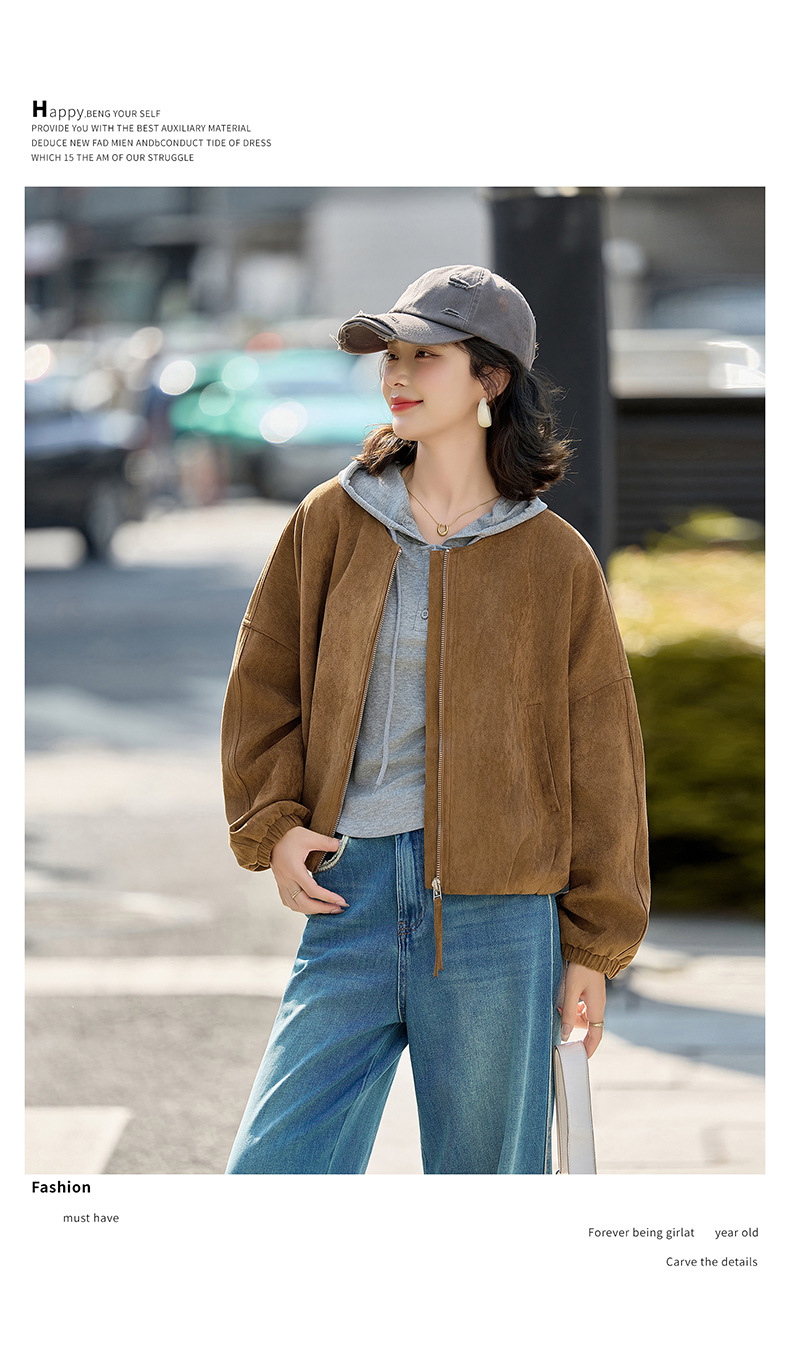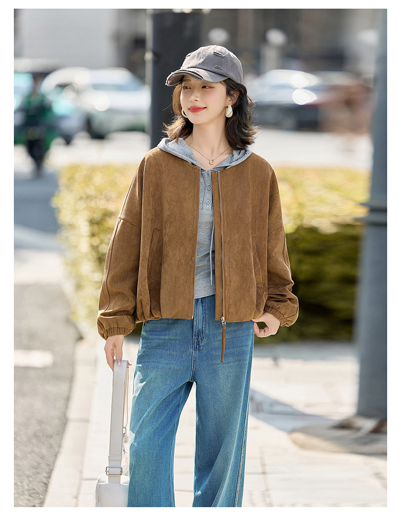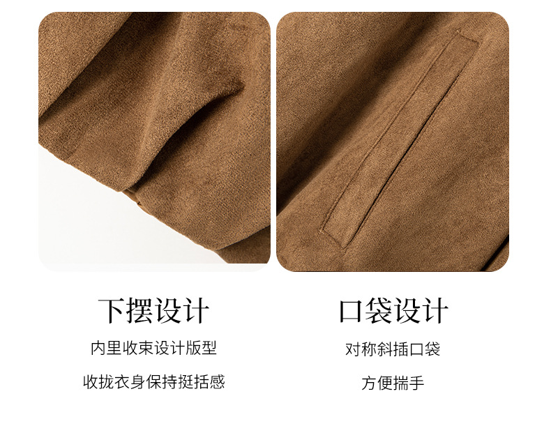 HR GSTX8092复古港风麂皮绒短外套宽松休闲长袖外套